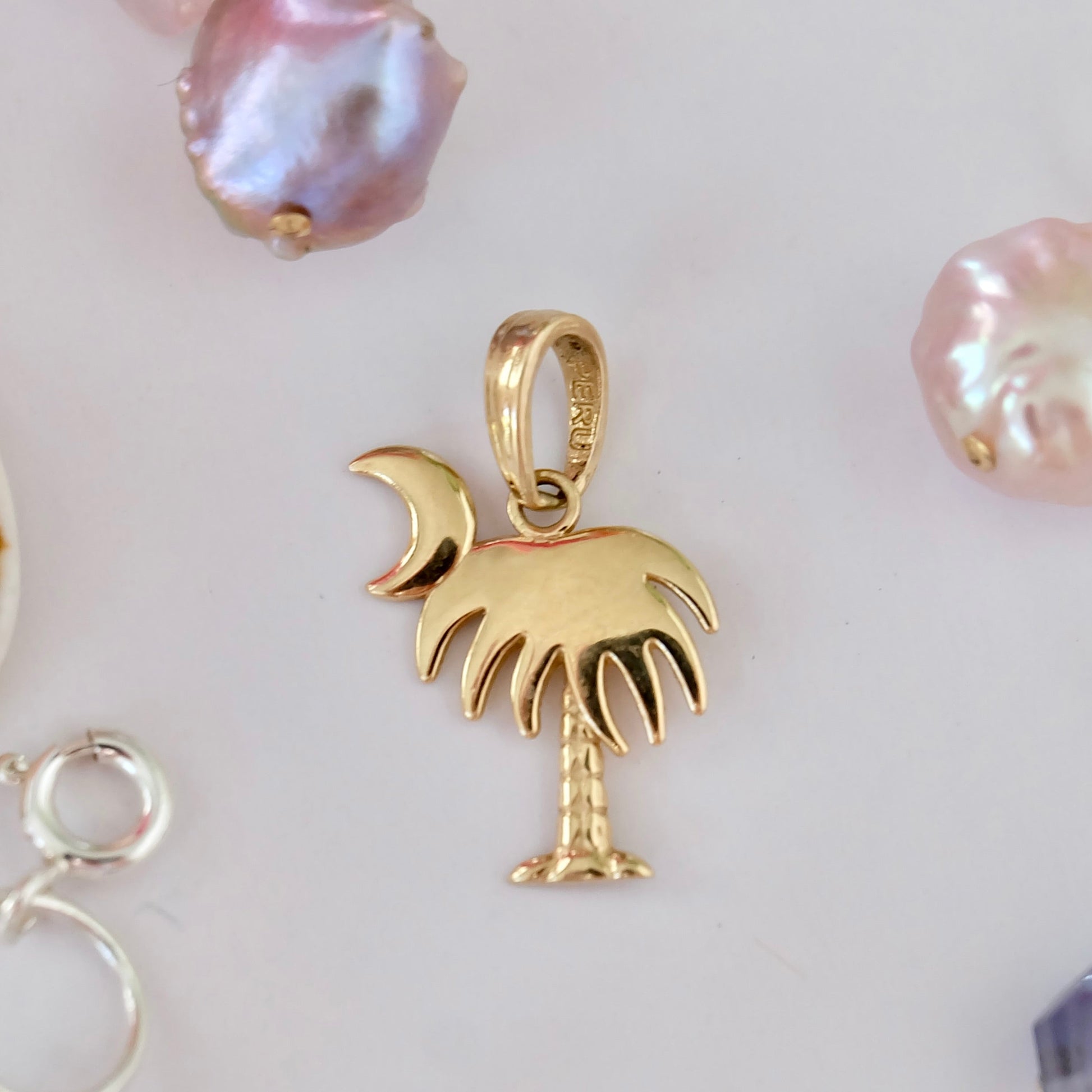 Embrace the allure of Charleston with our stunning 14K Gold Charleston Charm, a perfect representation of the city's iconic Palmetto and Moon symbol. This exquisite charm beautifully marries tradition with modern elegance, making it an ideal keepsake for anyone who cherishes the rich heritage of Charleston. Whether worn as a personal reminder or a stylish statement piece, it captures the essence of a city that enchants all who visit.
