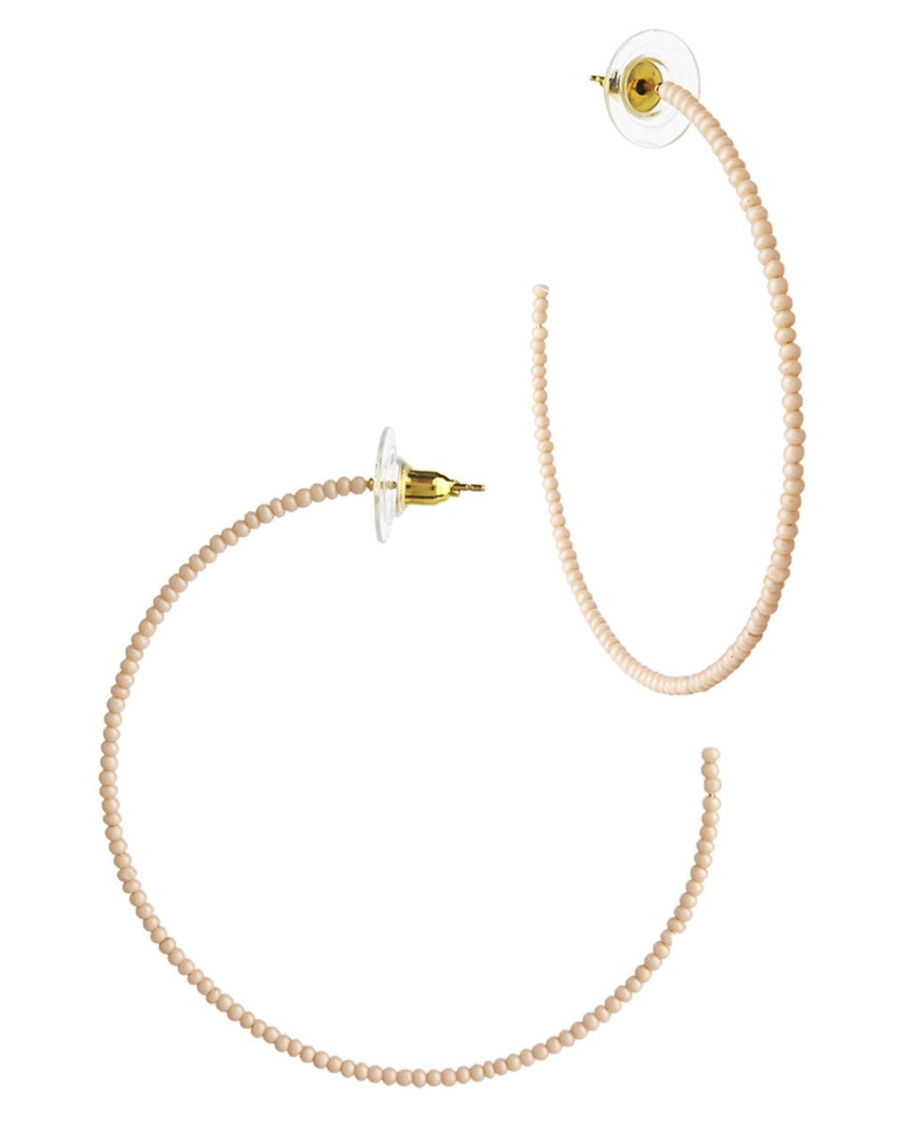 A subtle, sleek pair of 2" micro beaded hoop earrings is just what your look needs! Available in periwinkle and peach tones, they're the perfect finishing touch for any outfit in your wardrobe. Made from high-quality materials to ensure years of wear.