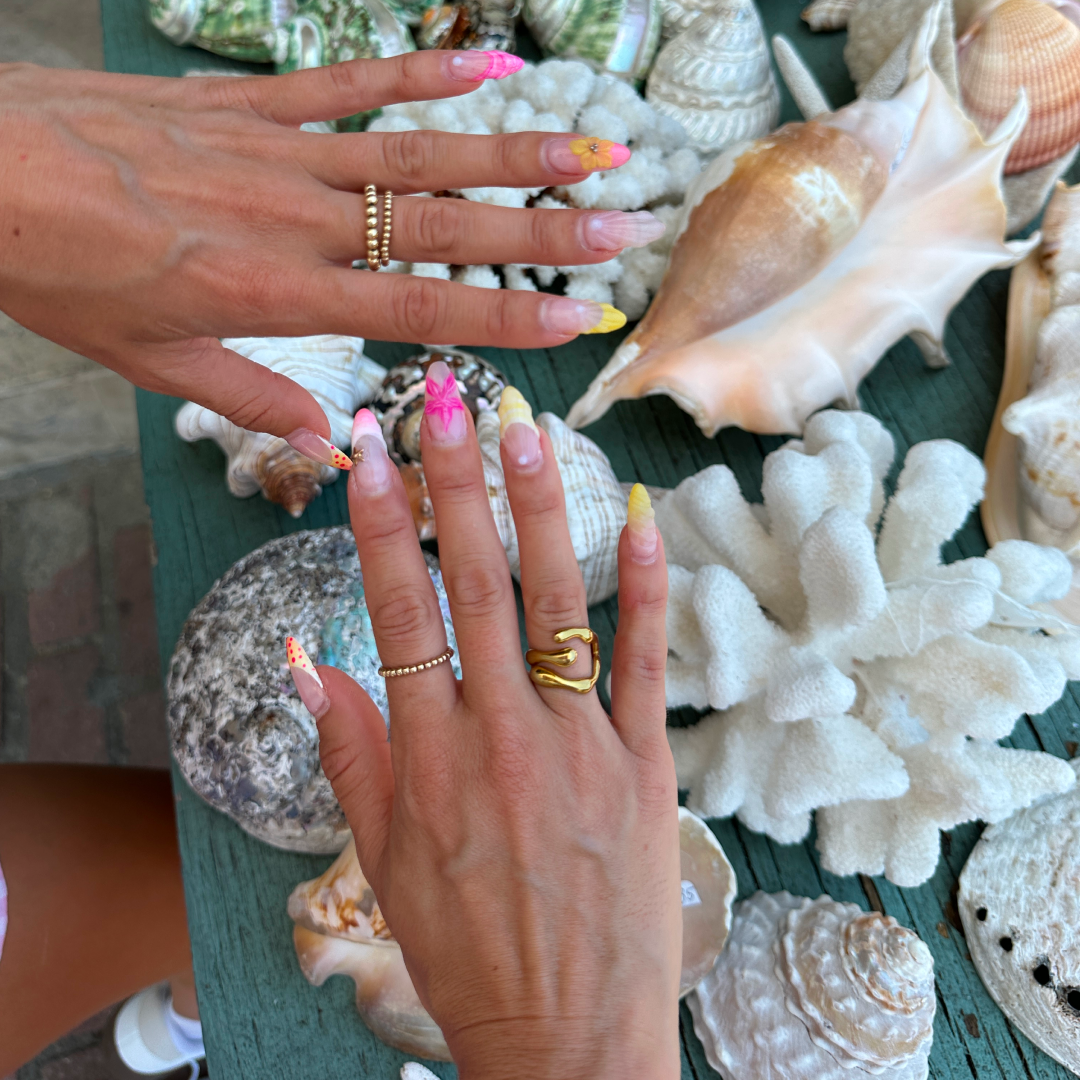 This stretchy ring is made of dainty 14k gold filled beads, and is the perfect addition to any outfit. Whether you're dressing up for a special occasion or just want to add a touch of luxury to your everyday look, this ring is sure to make a statement. Swim, sweat, and sleep in it without a worry in the world. 2mm is about the thickness of a nickel.