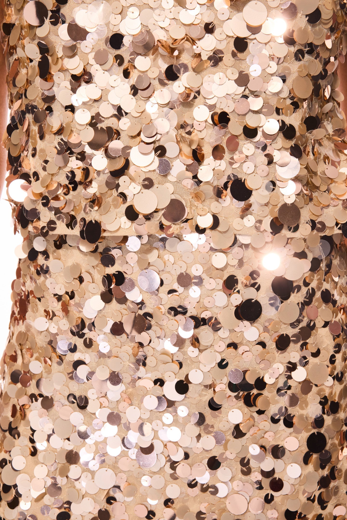 The Aurorlia Skirt is the must-have party piece of the summer. This piece stuns with shimmering large payettes done in a beautiful gold. With a body-hugging silhouette, the flirty skirt is finished with a zipper. Pair with the Vivaldina Top for a full set.