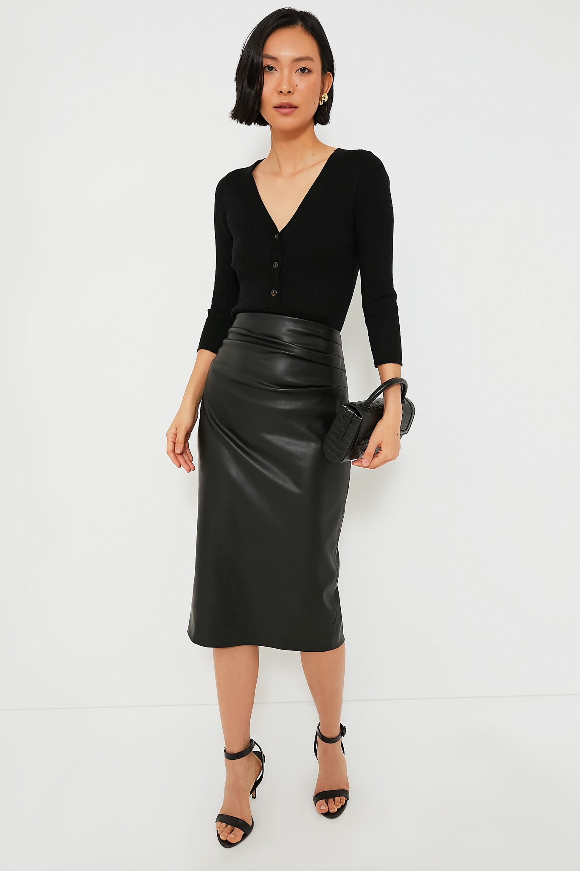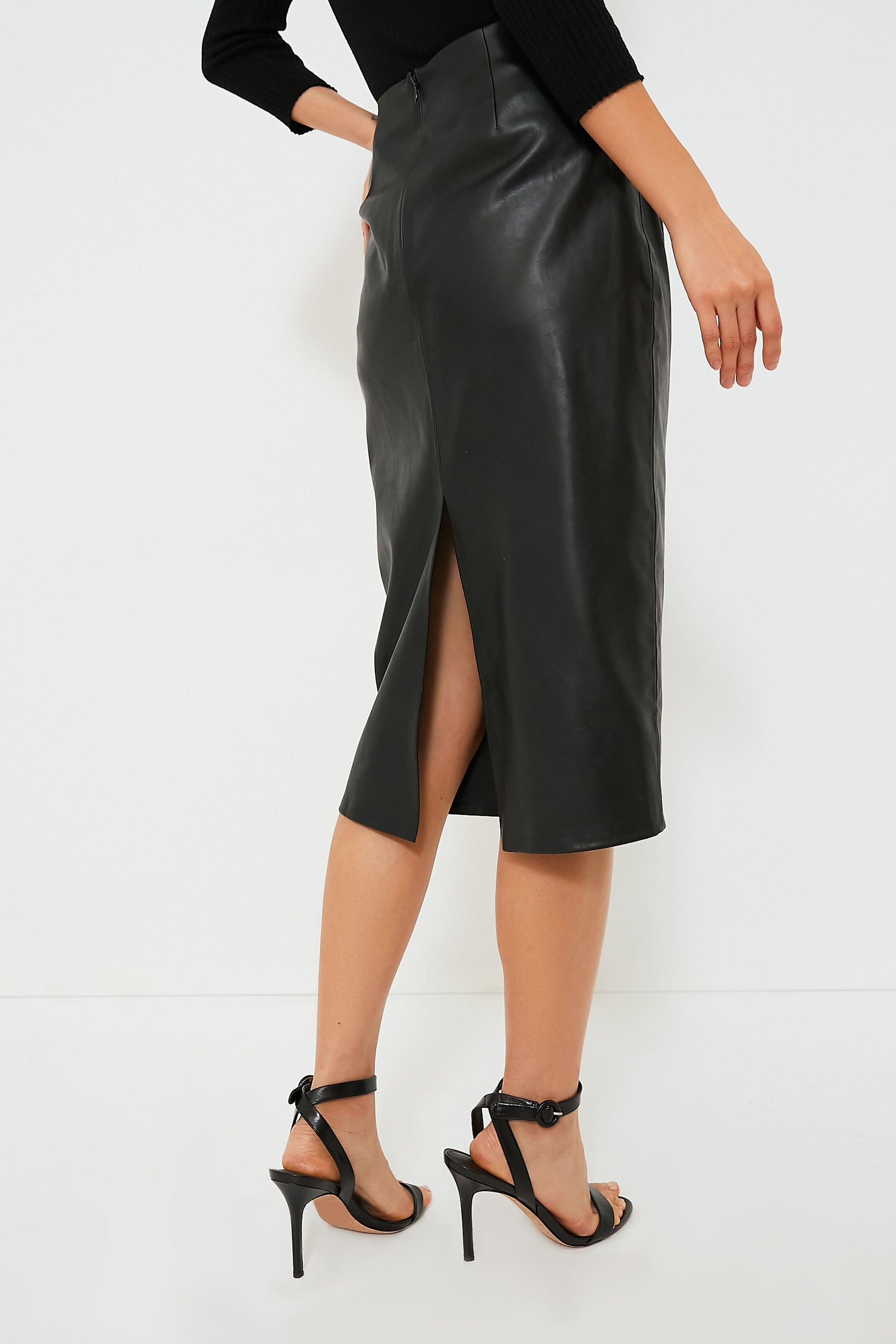 Black Leather Monica Midi Skirt
