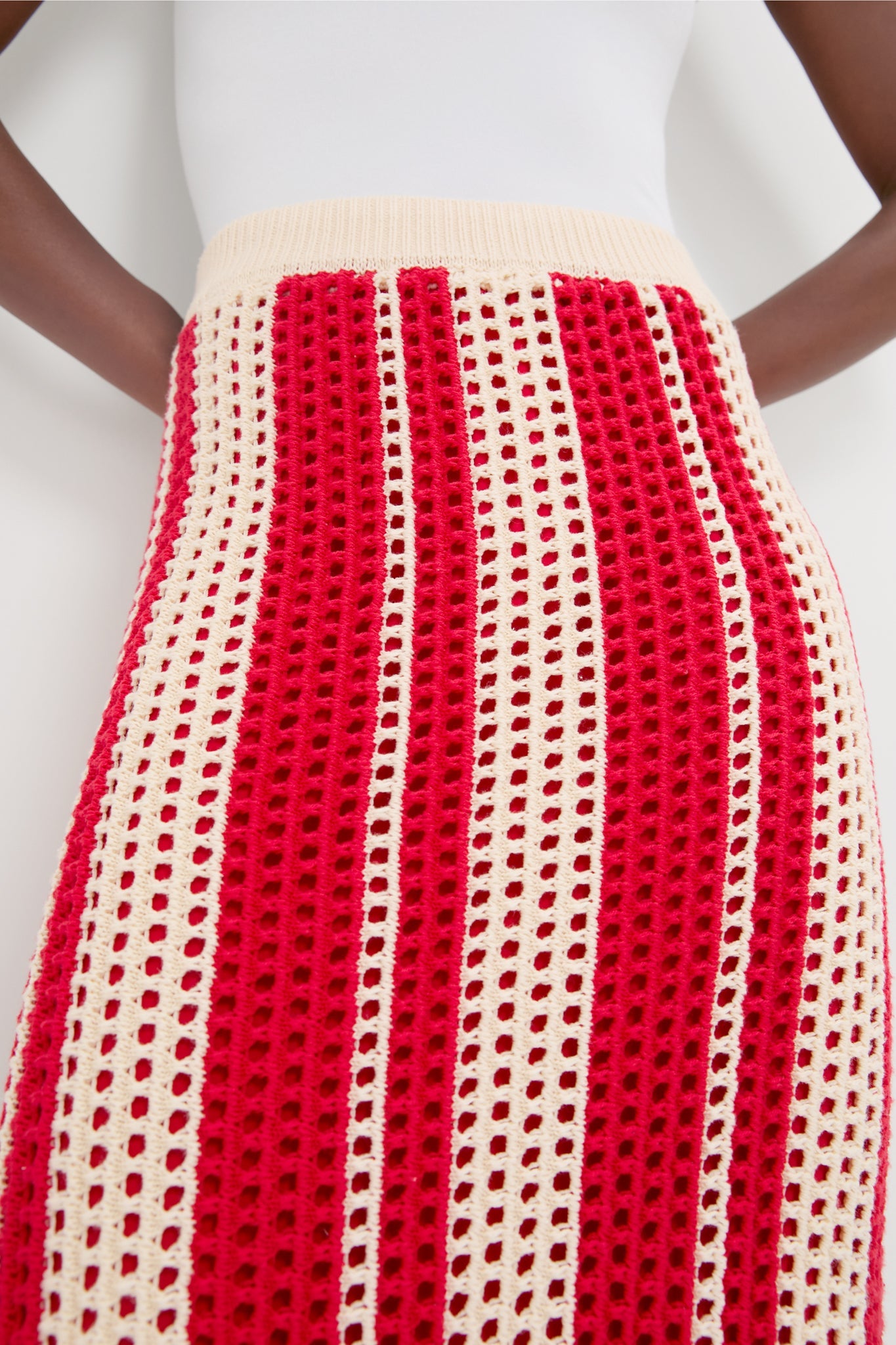 Burnt Red & Beige Striped Knit Ren Midi Skirt