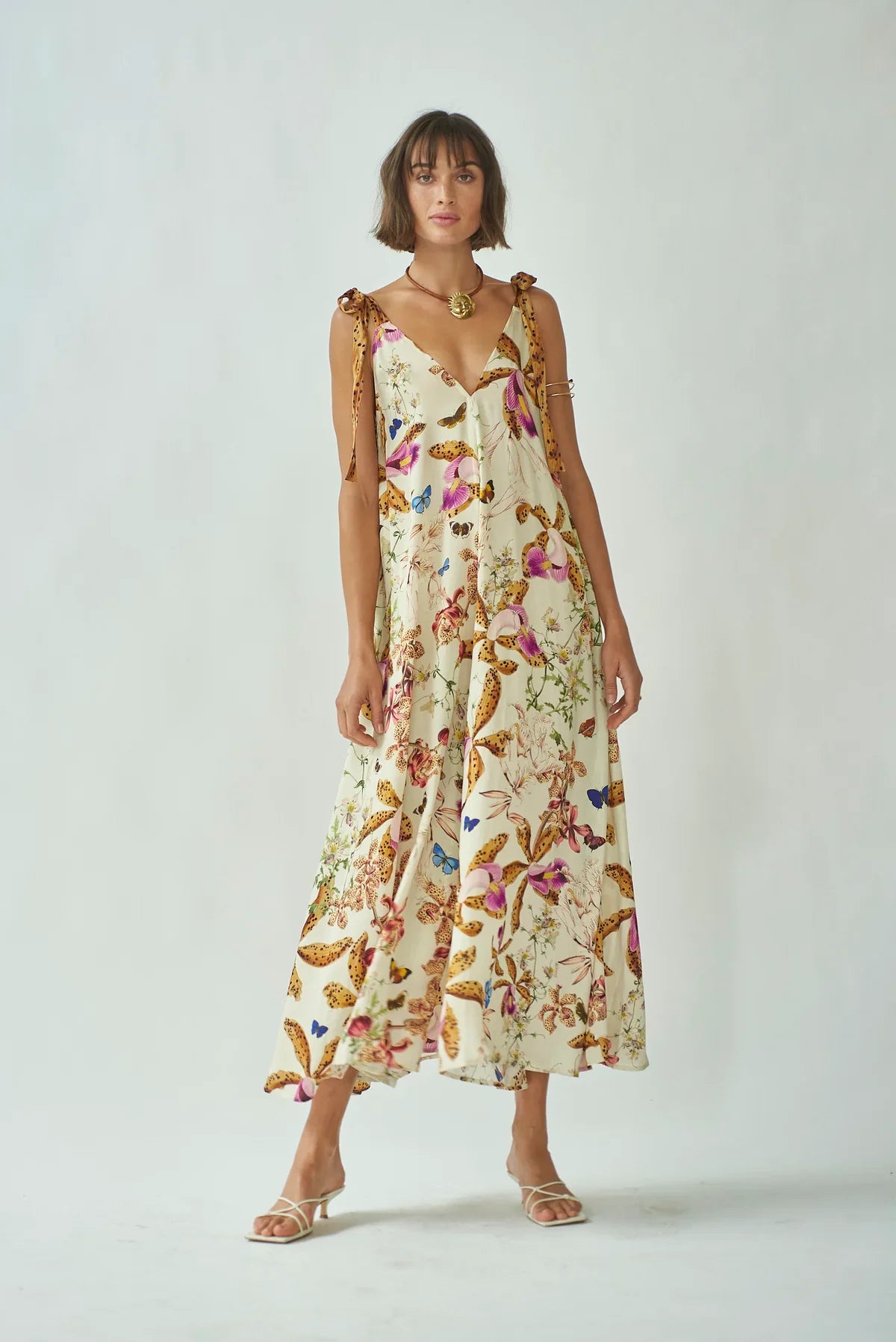 The Carolina K Liv Jumpsuit pays homage to Colombian artist Paula Gonzalez with its Divine Floral print pattern. Its adjustable spaghetti straps and pull on style make it easy to wear, while the loose fitting design provides comfort. Perfect for any occasion, this jumpsuit is a must-have for the art lover.
