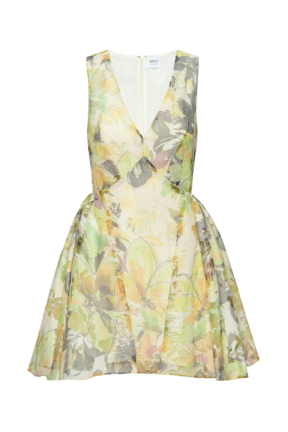 Cerise is a stunning new mini dress in a gorgeous burnout Lucent Blooms print. This feminine a-line silhouette features a fitted bodice and deep v neckline. A gathered waist provides a flattering silhouette. Fully lined with a hidden back zip. Pair with everything from heels to flats for the perfect spring look.