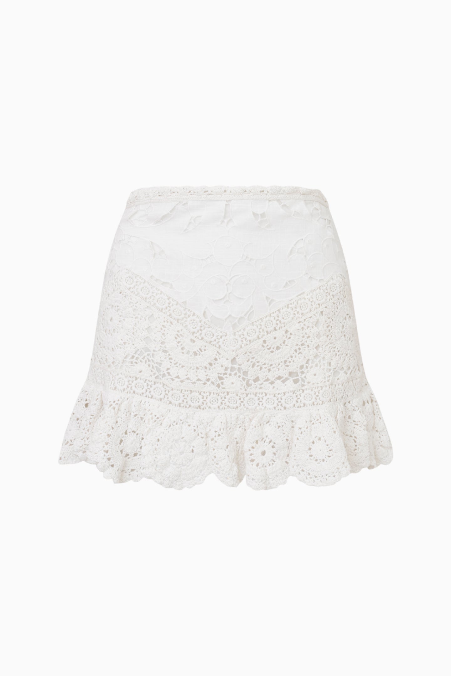 Extra charming in the Cherie Skirt. This Bohemian-inspired mini is designed using a soft cotton slub fabric mixed with a beautiful blend of vintage-inspired laces and crochet. The A-line skirt features a flirty flounce at the hem and is finished with a zipper for functionality. Pair with the Pellier Top for the full set.