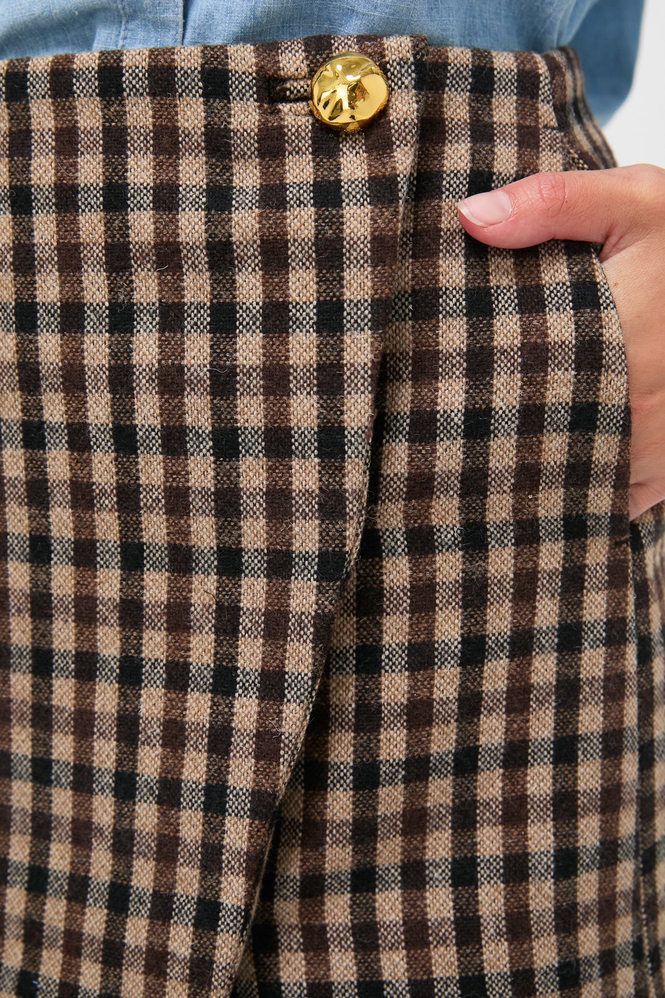 This wool wrap skirt brings timeless elegance with its checked pattern and mini silhouette.