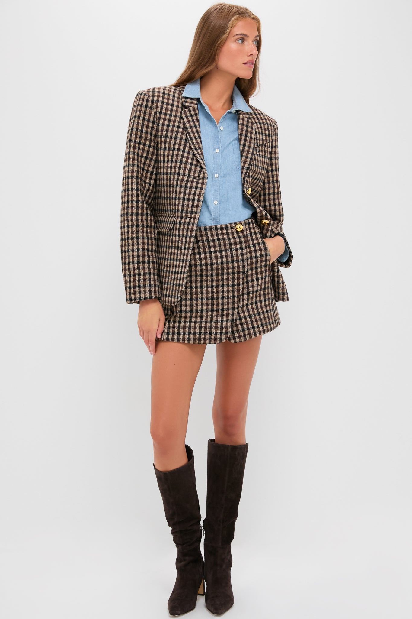 This garment is inspired by Scandinavian style with its whimsy and playful approach to design. Pair with the matching Chicory Coffee Check Wool Mix Oversized Blazer, a button down, and boots for a chic coordinated look.