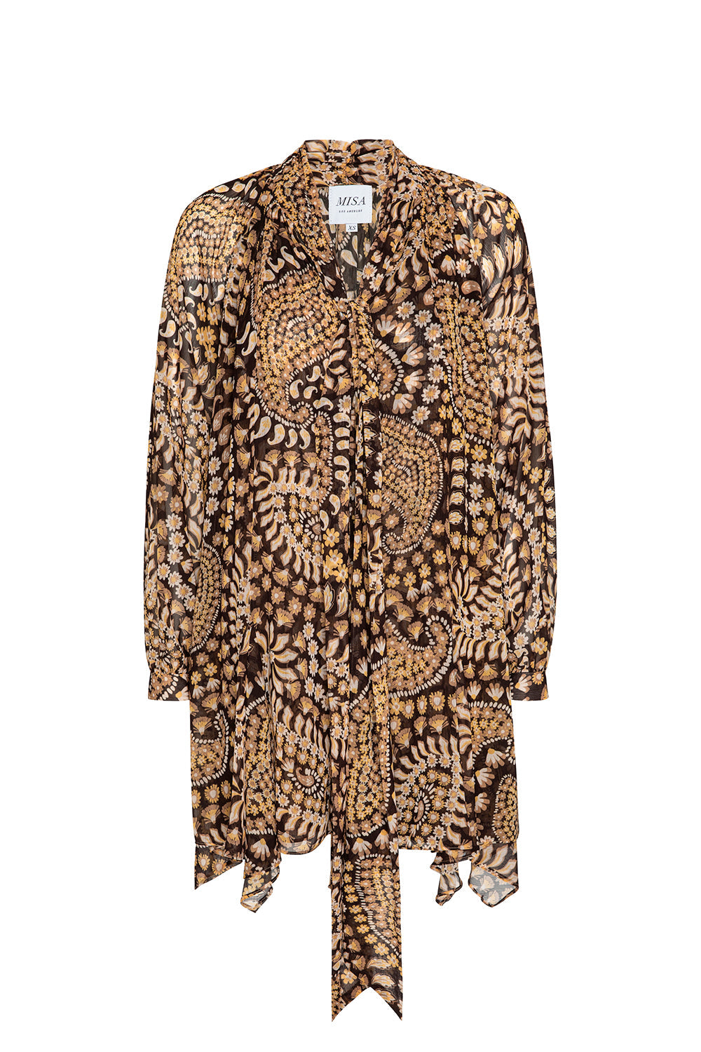 The Cindy Dress is a mini-length silhouette cut from our Daisy Paisley printed crinkle chiffon. The relaxed, double-lined body is complemented by sheer blouson sleeves with button cuffs. A high neckline features a versatile tie detail that can be styled at the front or back. Finished with a playful handkerchief hem for added movement.