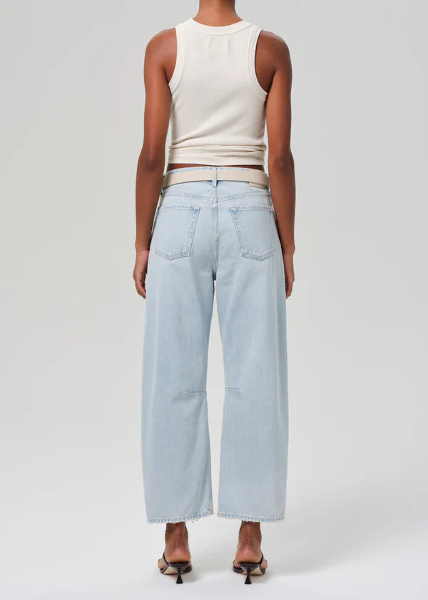 The Citizens of Humanity Miro Relaxed Jean is the perfect blend of style and comfort. Crafted from rigid, non-stretch regenerative cotton, its soft hand feel sets it apart from other jeans. The slightly relaxed top block and tapered barrel leg silhouette give a modern twist to the classic design. The light indigo color and subtle destruction at the knee add a touch of edge to any outfit.