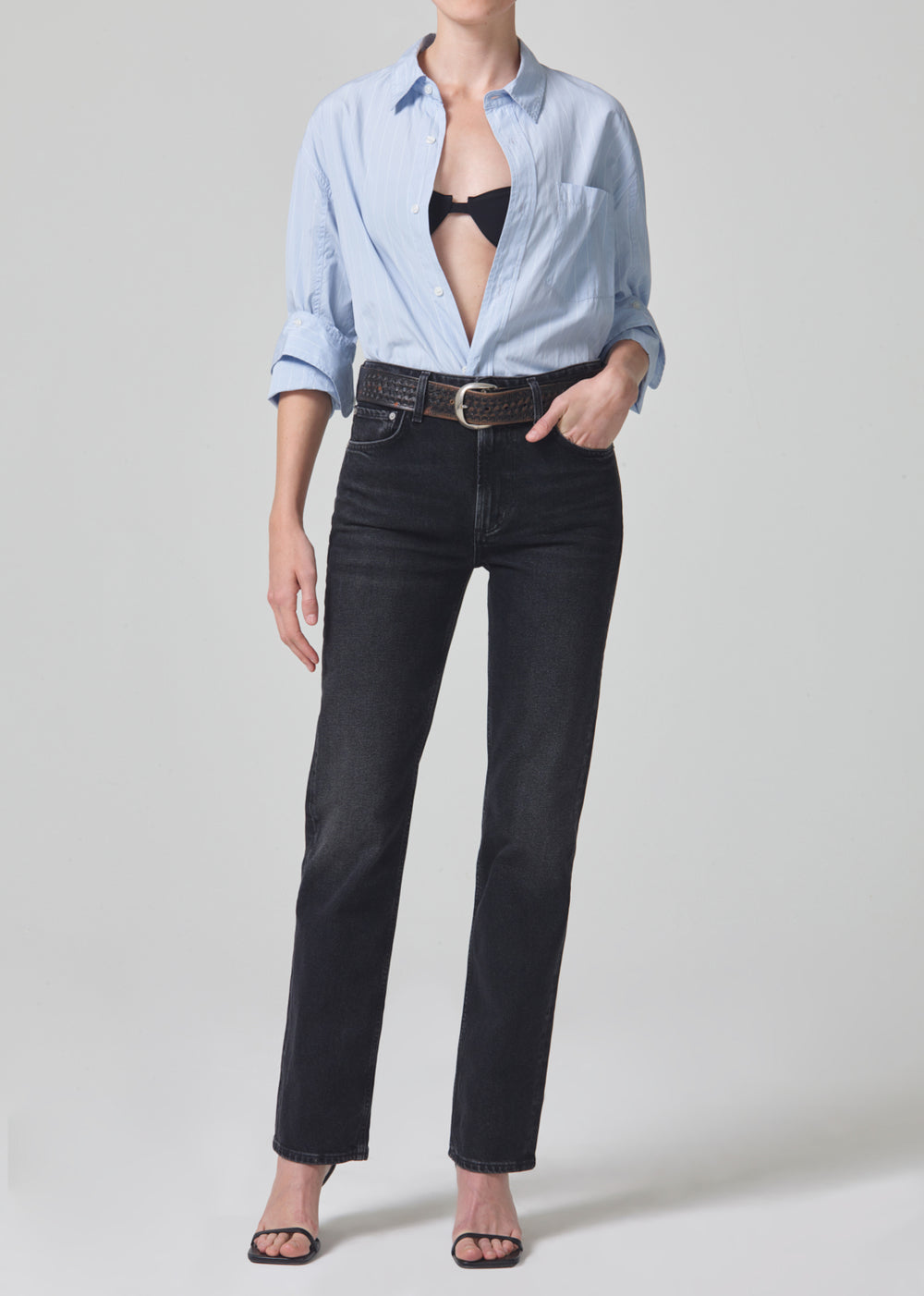 Expertly crafted, the Citizens of Humanity Zurie Straight is designed with a contoured waist for a flattering fit. Its tidy top block and leg silhouette create a sculpted bowed shape, while the clean hem adds a polished finish. Experience comfort and style in one with these versatile jeans.