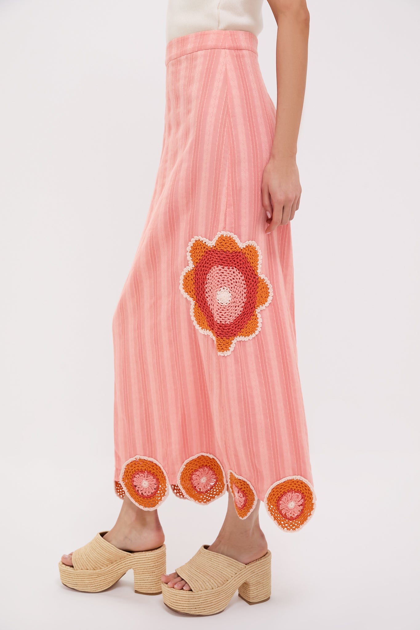 The Wells Skirt is a playful coral style with crocheted detailing along the hem and sides. Flirty, fun, and perfect for warm-weather activities, we are styling this with a simple white tank and sandals or with the matching Coral Crochet Blake Tank and chunky espadrilles!