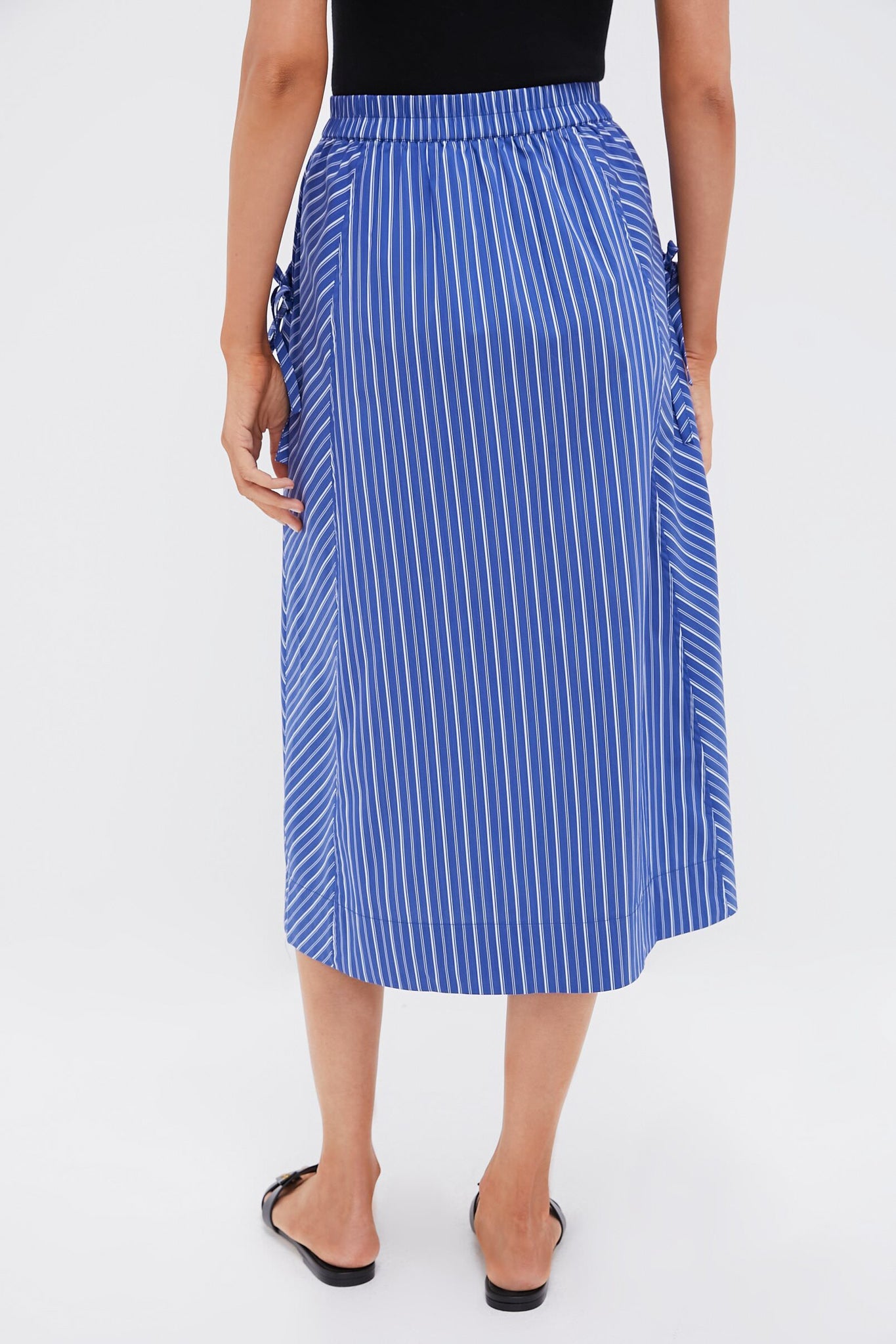 Dark Blue and White Kendall Play Stripe Midi A-Line Skirt
