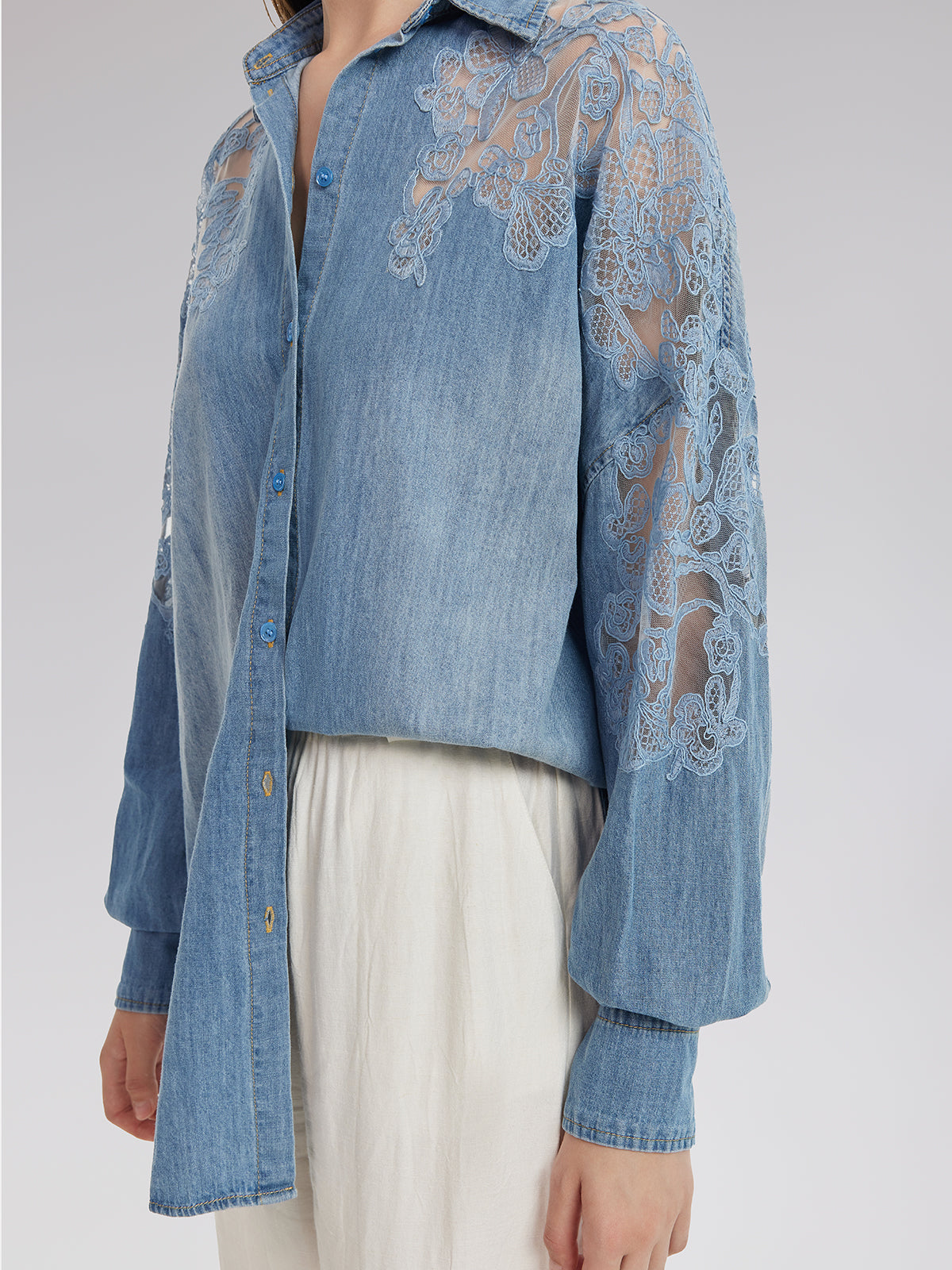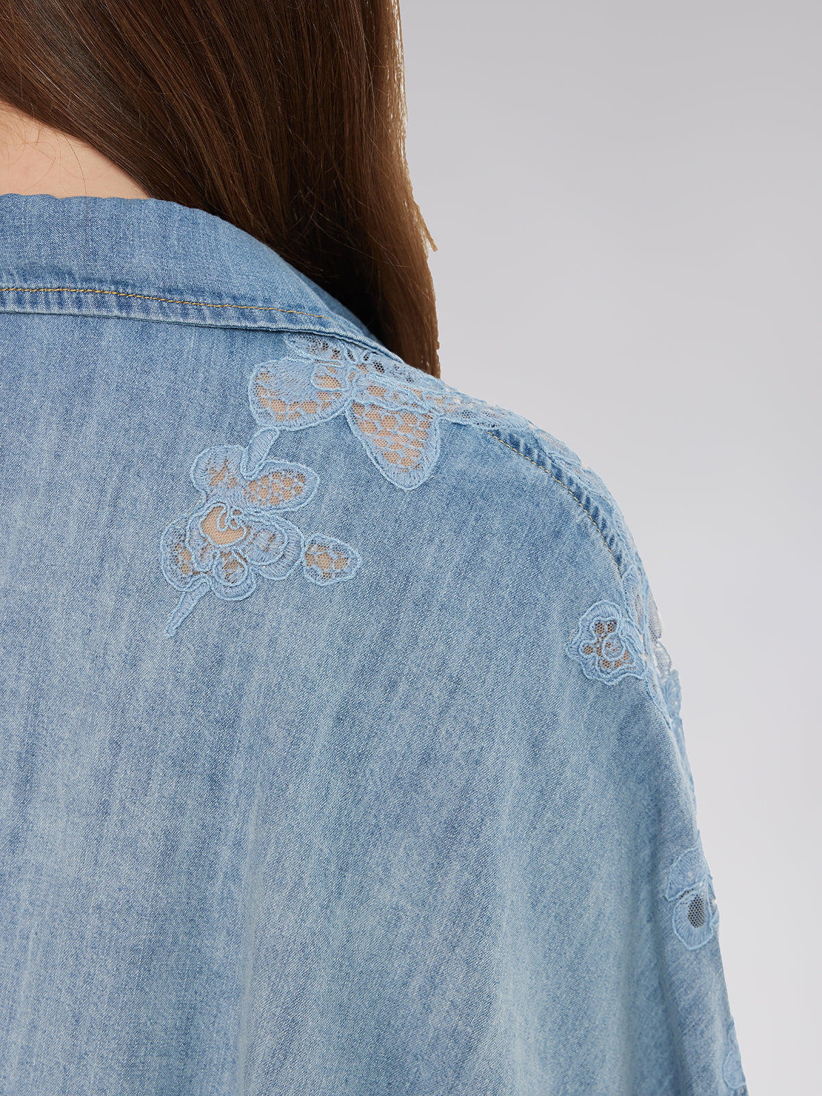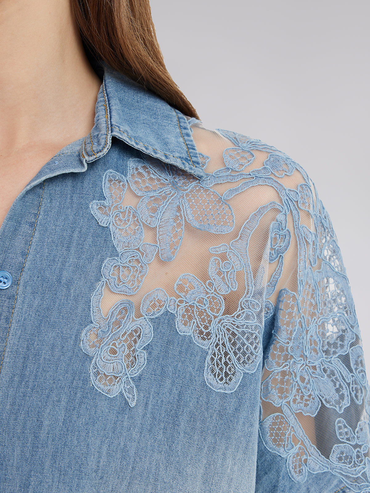 Floral Lace Panel Denim Shirt