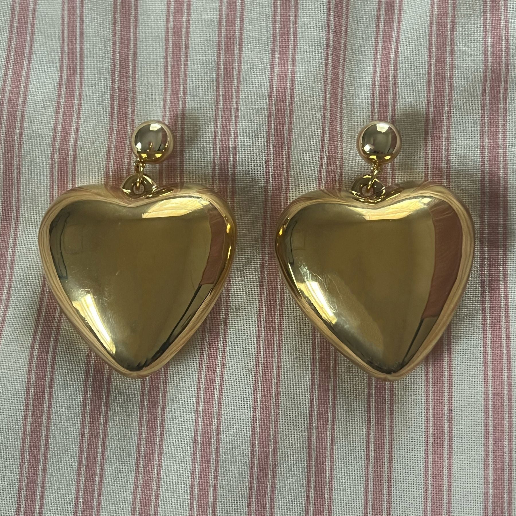 Nickel & Suede's new Gold Bubble Heart Statement Earring is 14k gold plated, lightweight, and waterproof. The bubble heart earring is the earring to to keep around for a statement style all-year round.