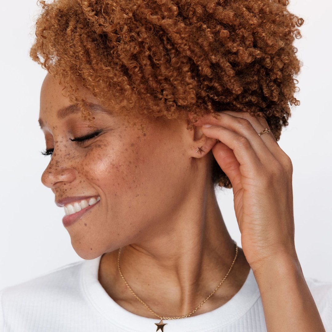These tiny stud earrings add serious star power to any ear stack. Wear them in a second piercing with your favorite N&S statement earrings, or pair them with huggies, studs, and ear cuffs for a layered look.