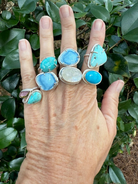 This gold turquoise ring is meant to stand alone—but stacks well with other silver jewelry, gold favorites, and even turquoise bracelets or pendants. Wear it with linen, denim, or something dressier for special occasions. However you style it, the bright blue color and lavender undertones speak for themselves: bold, earthy, and unmistakably rare. Its timeless beauty and quality craftsmanship ensure it will suit your outfit and life for years to come. Customers appreciate how this ring complements both casual and formal art-inspired ensembles.