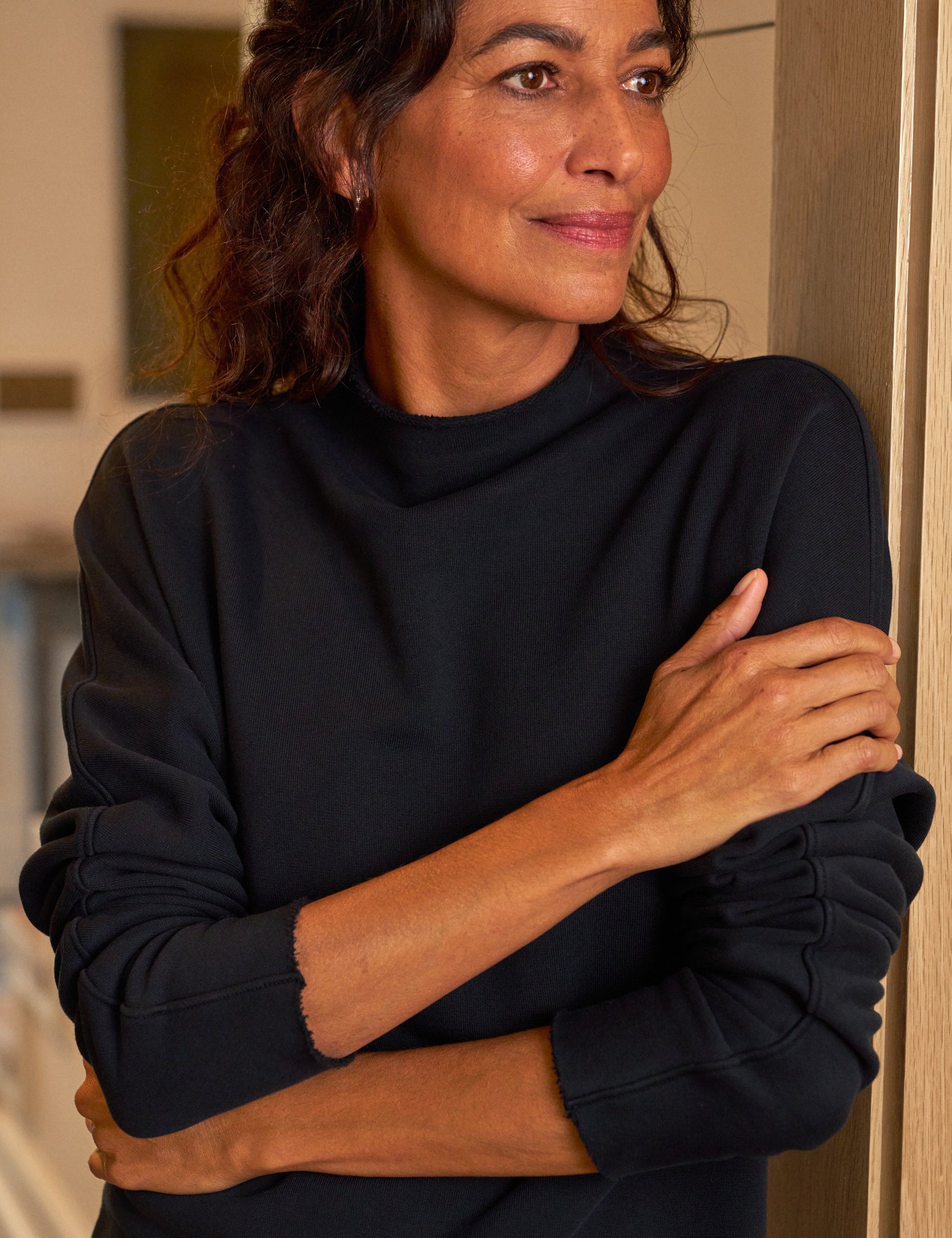 Izzie's secret? She's really an elongated sweatshirt moonlighting as a perfect party dress...psssst, your secret's safe with us.