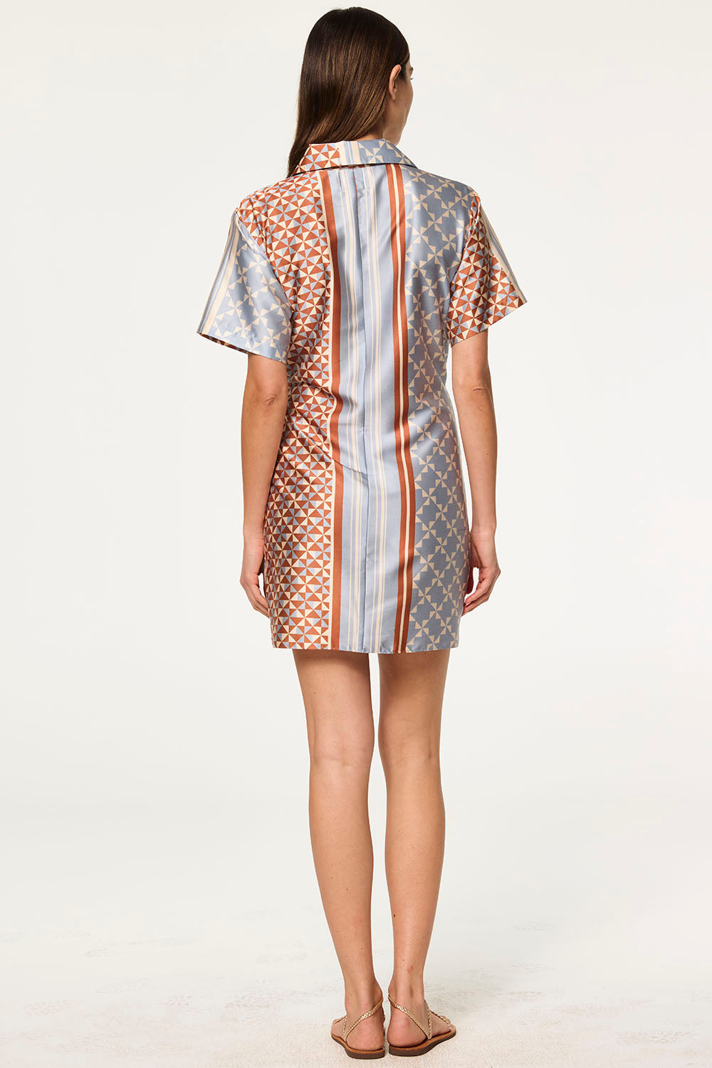 Kezia is a modern wrap-style mini cut from our Checkered Tile–printed satin. This chic shirtdress features a full button front, spread collar, and relaxed half sleeves. The silhouette is defined by a side self-tie at the waist, creating a flattering, adjustable wrap effect. Effortlessly versatile, it pairs beautifully with strappy heels or flats for a polished look from day to night.