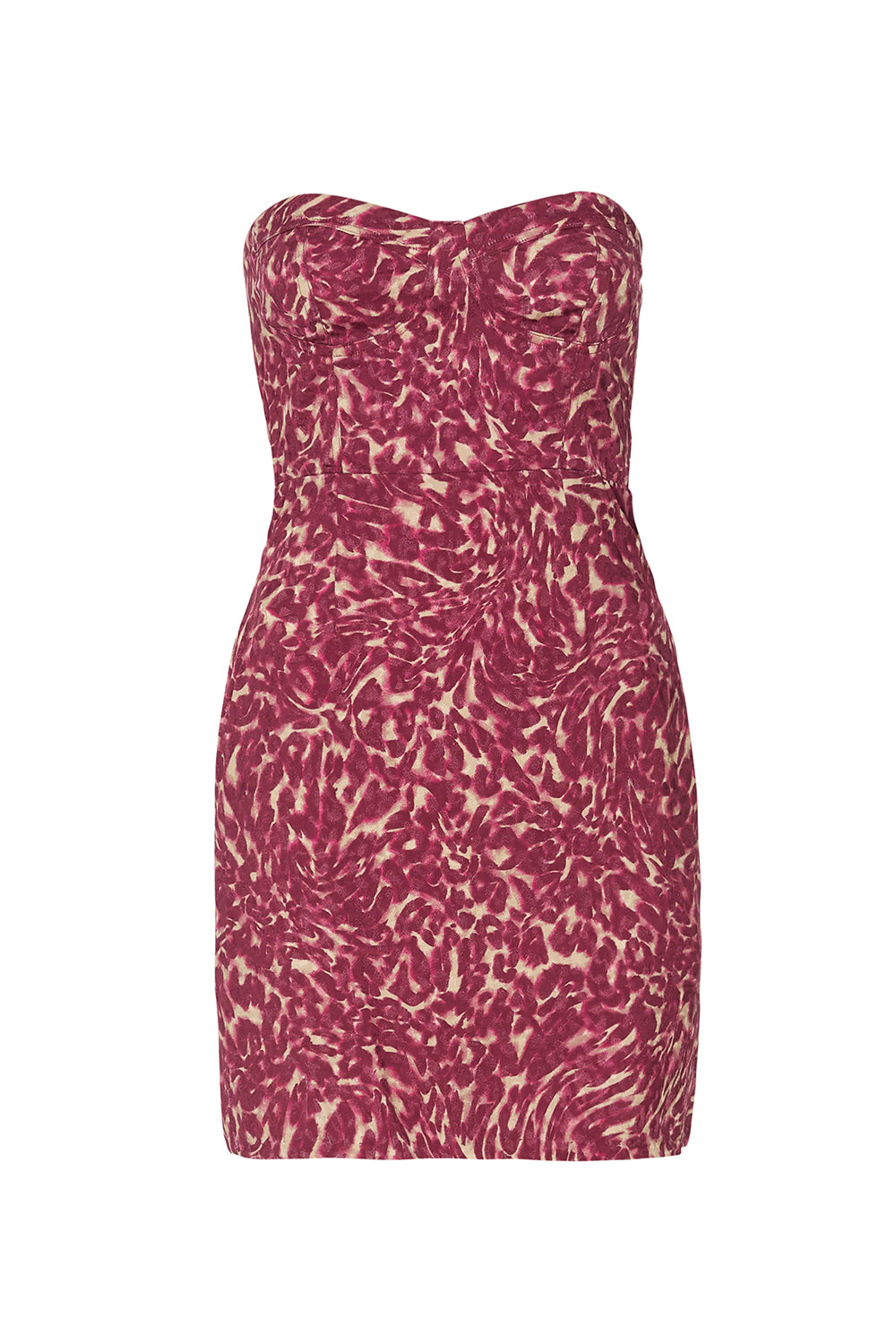 Cut from a fuchsia leopard jacquard, our Kinsley dress is perfect for all your holiday moments. A strapless, fitted silhouette with sweetheart neckline and bustier bodice. Hidden back-zip closure. Pair with tights and the coordinating Catroux jacket for a standout soirée look this season.