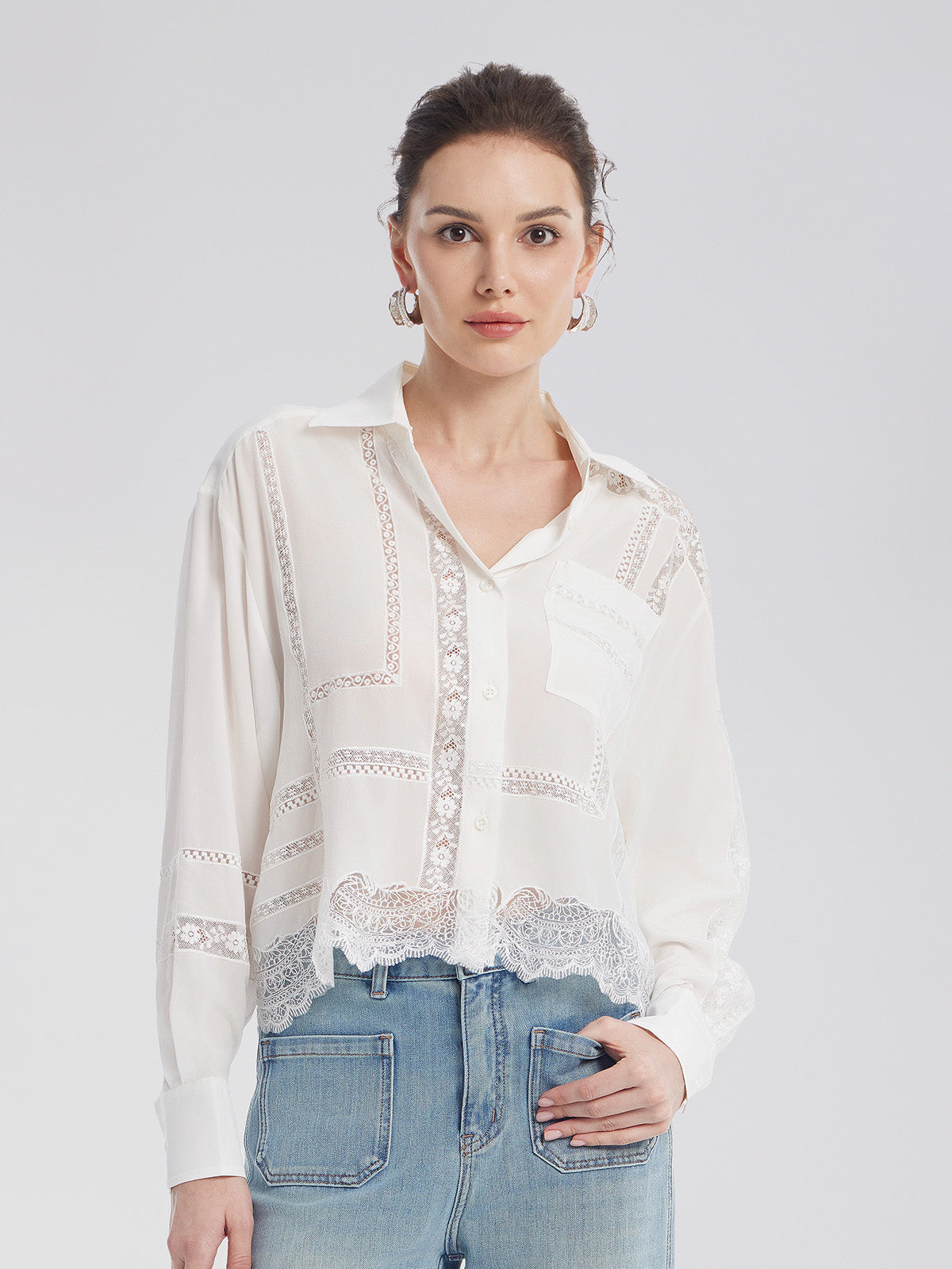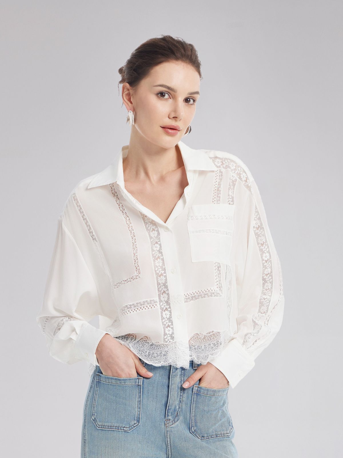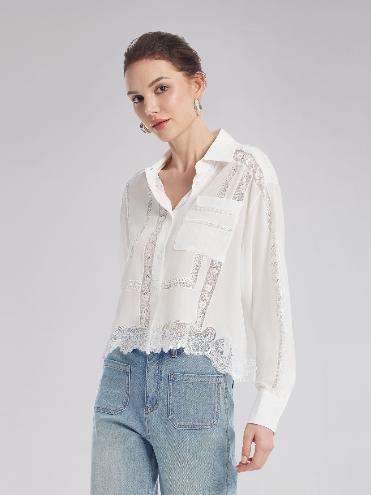 Lace Mesh Patchwork Blouse
