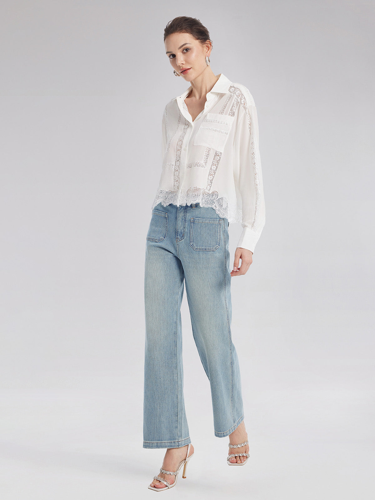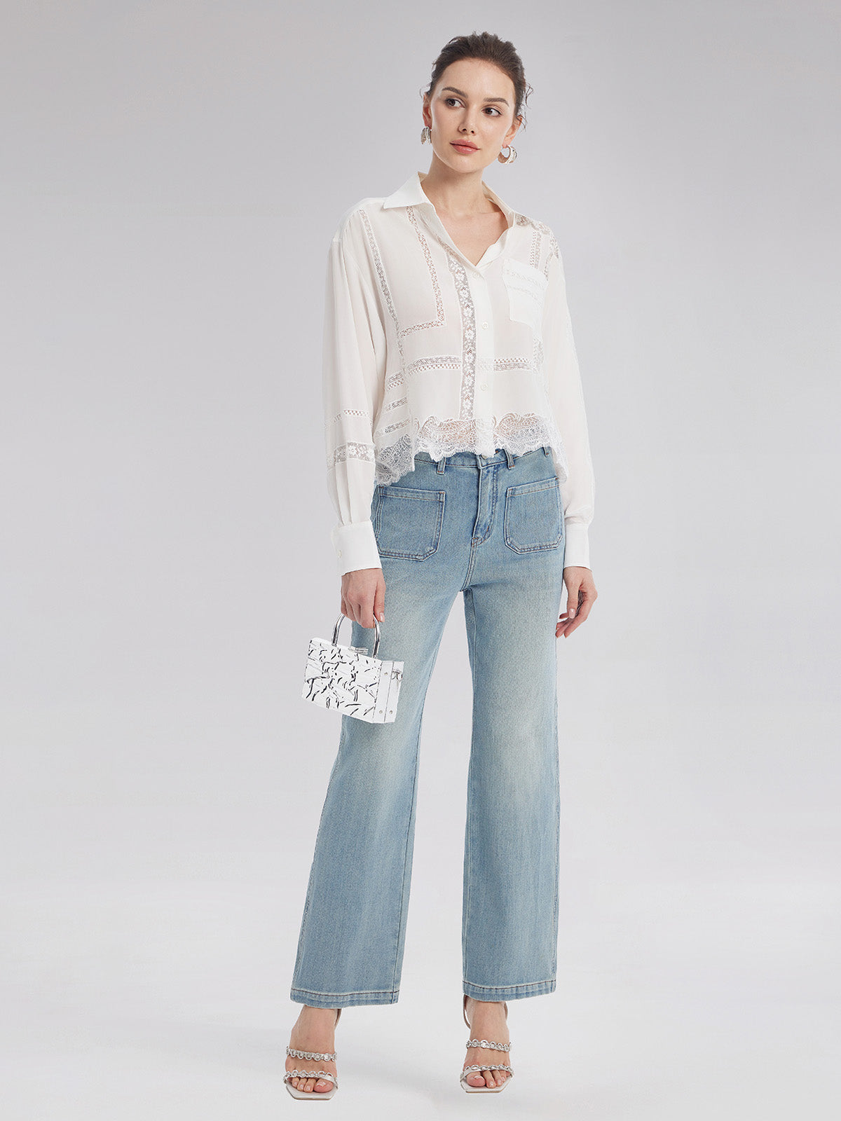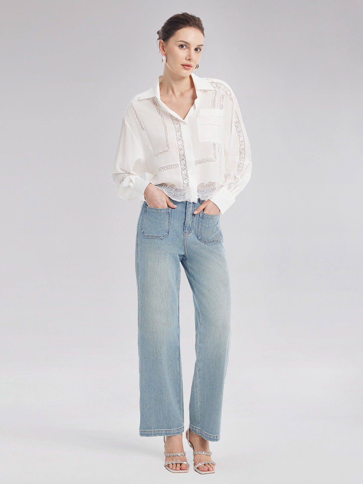 Lace Mesh Patchwork Blouse
