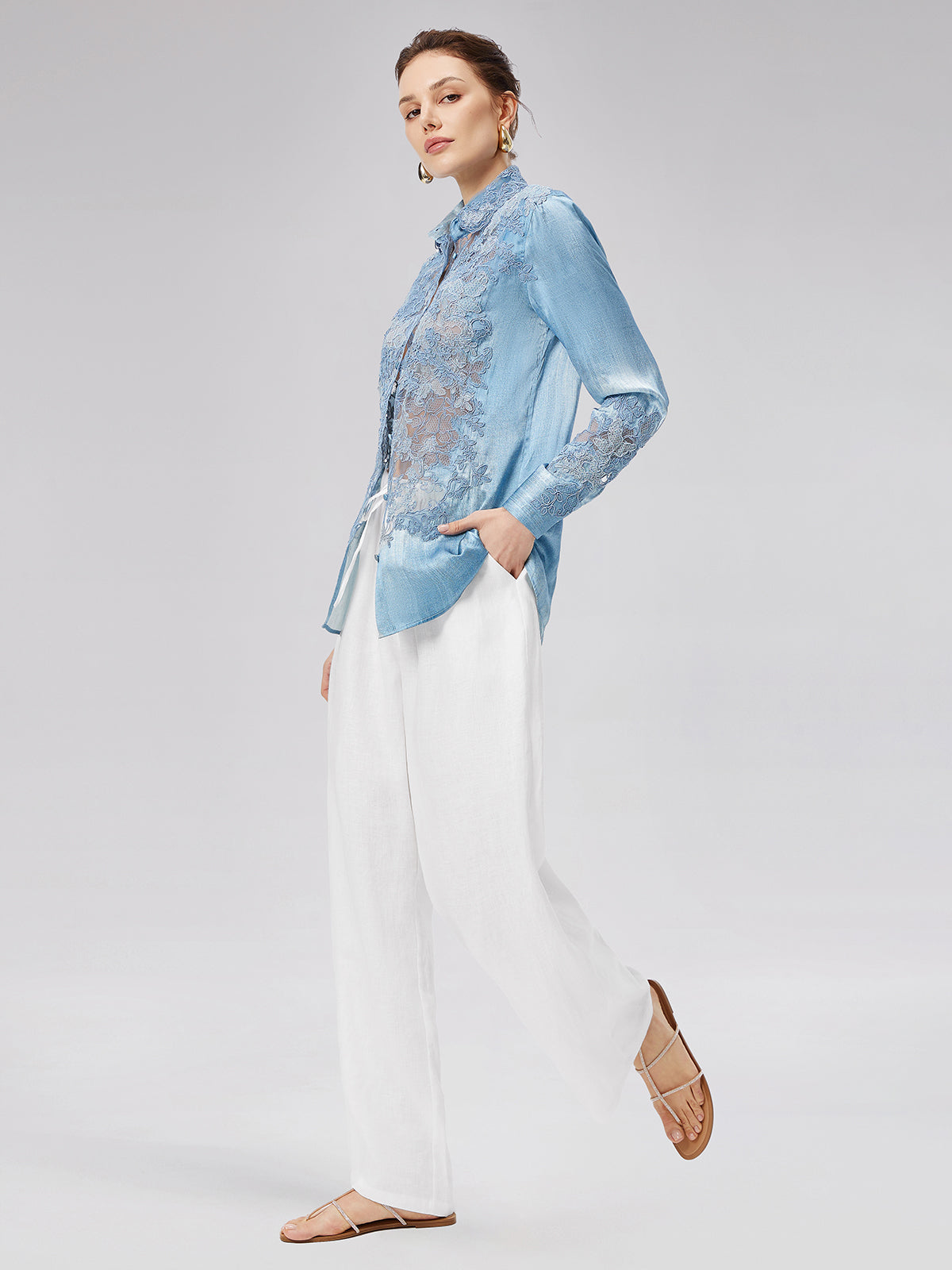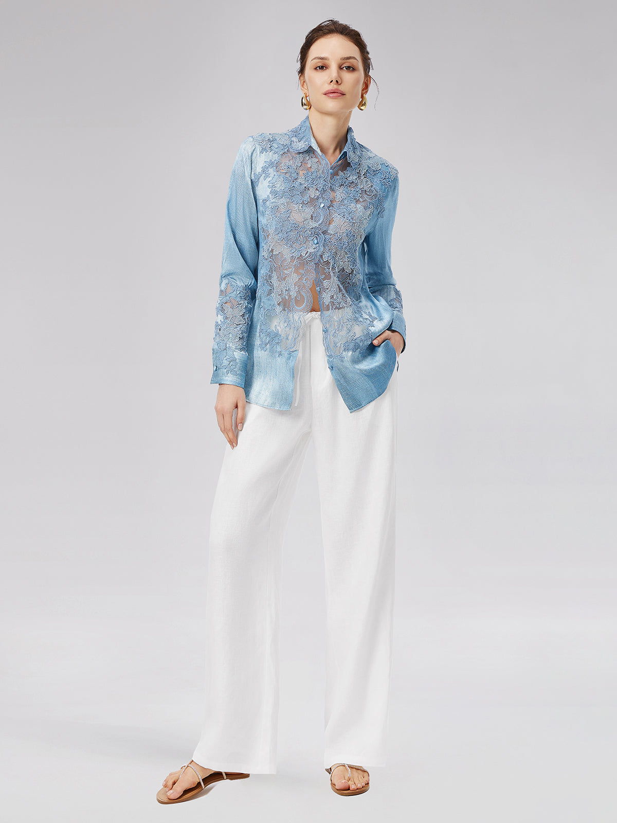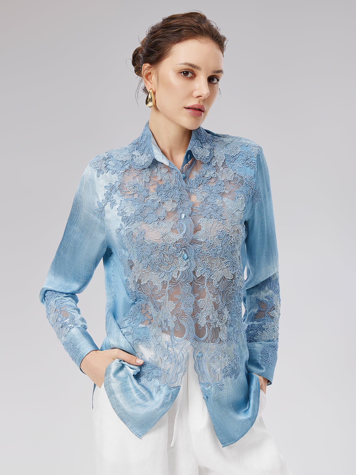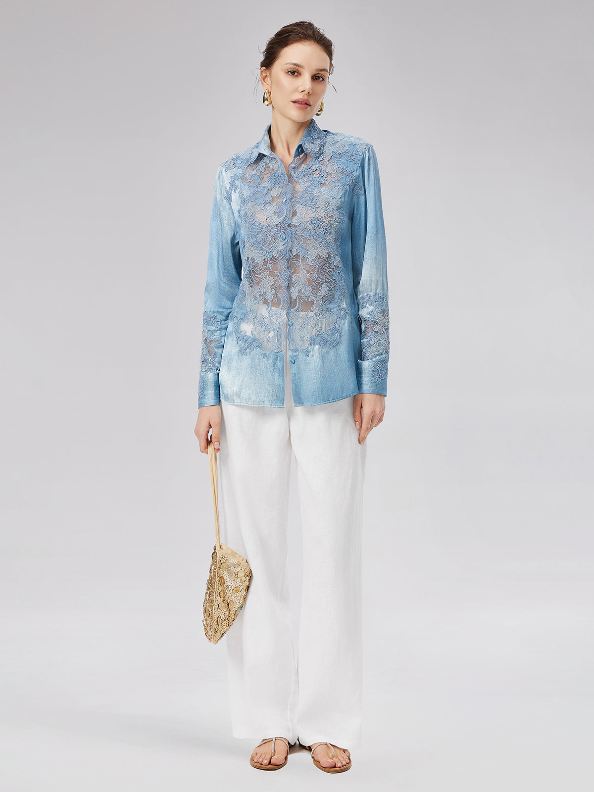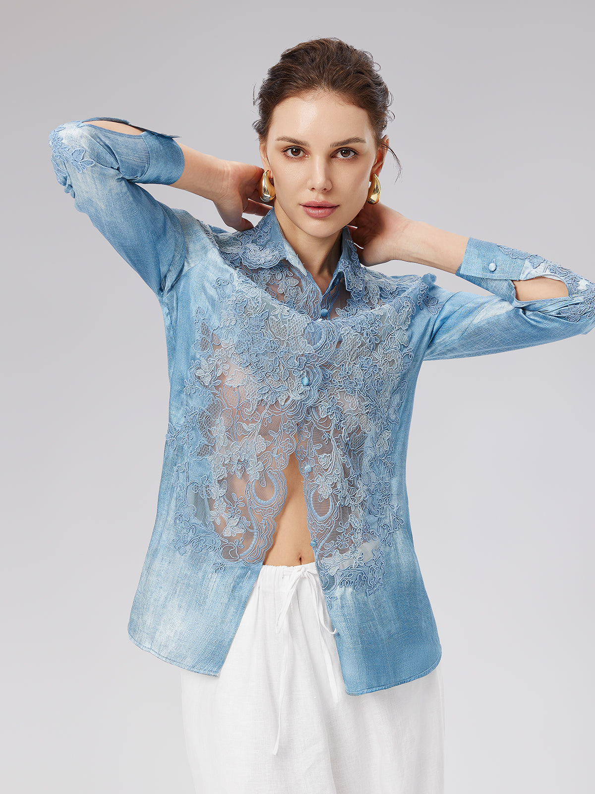 Elegant lace cutouts with intricate patterns showcase feminine grace and elegance, offering high breathability and adding depth and texture. The combination of washed denim and lace blends casual denim with the sophistication of lace, perfectly balancing fashion and functionality. Suitable for various occasions such as picnics, weekend outings, beach vacations, parties, and formal events.