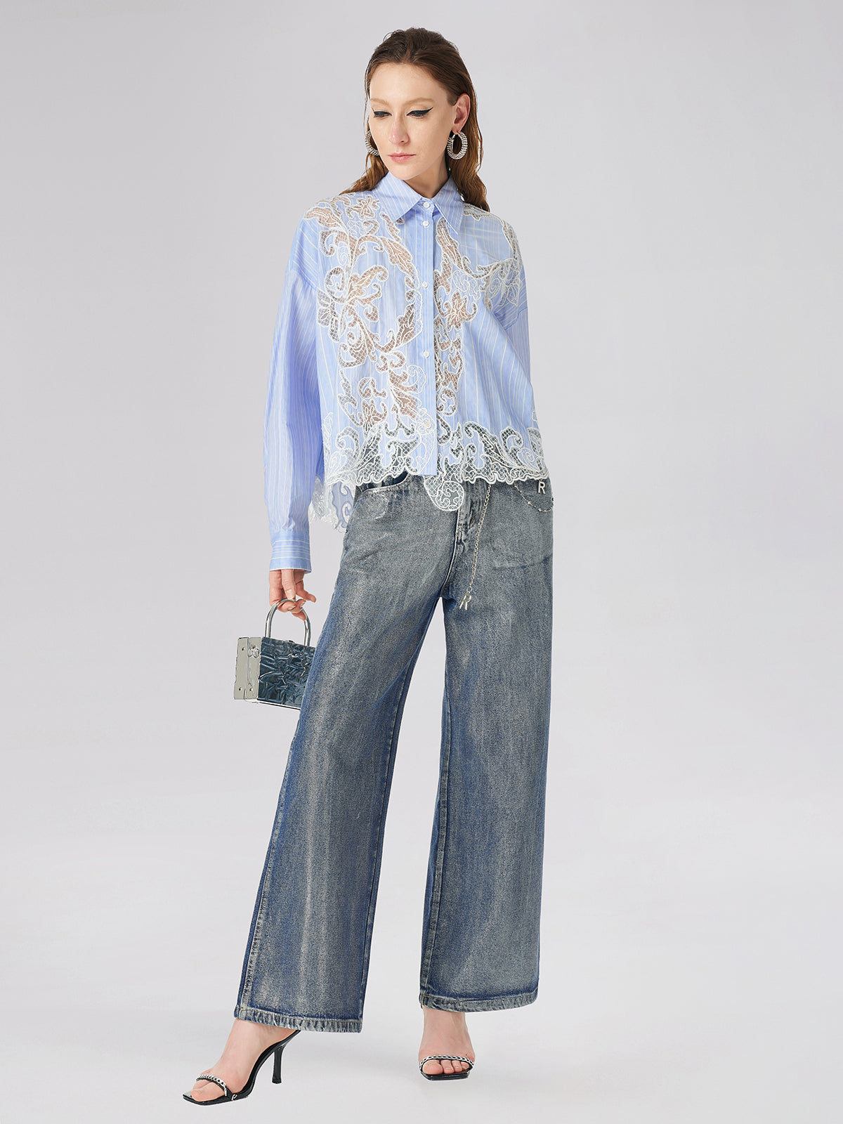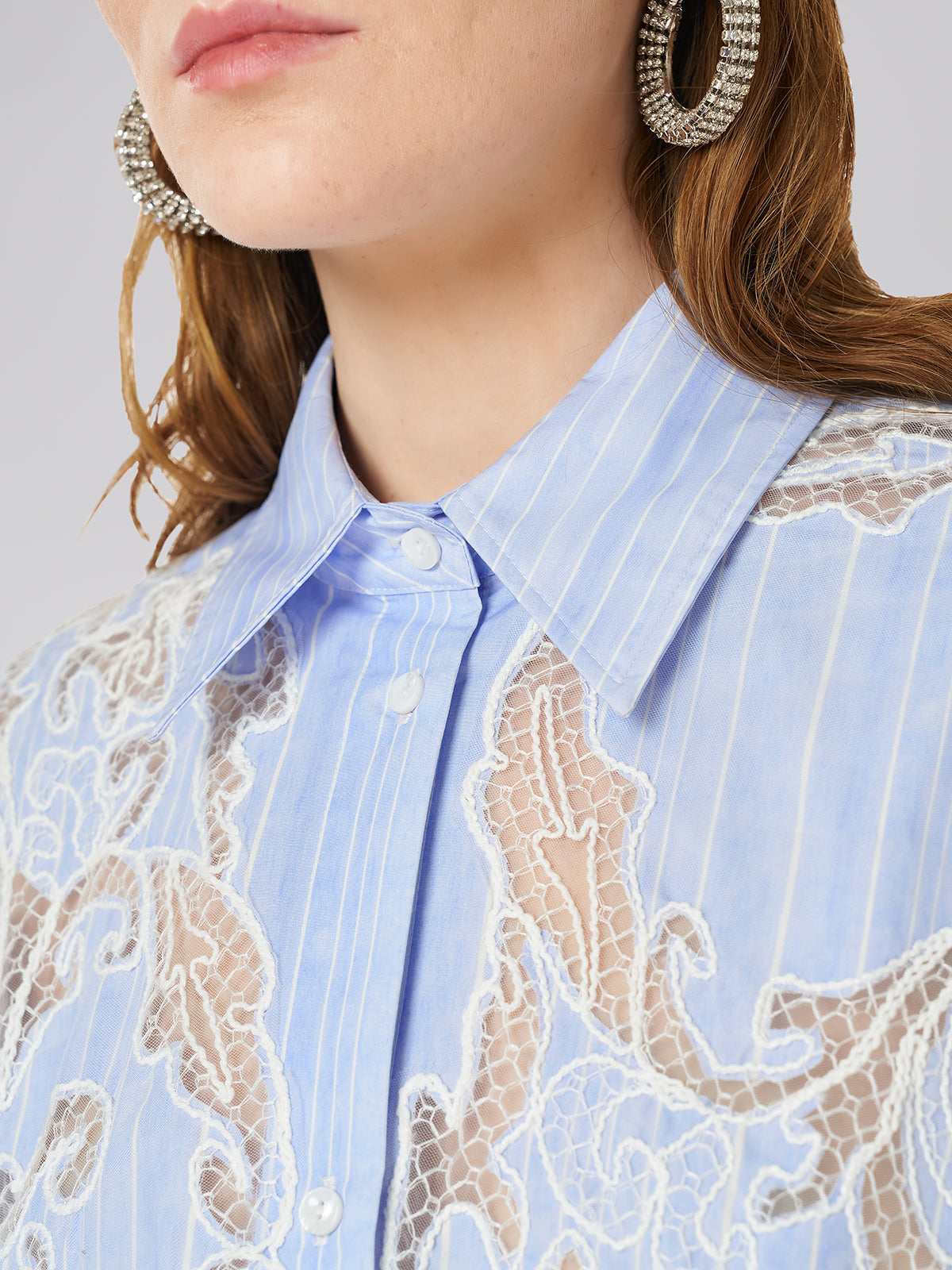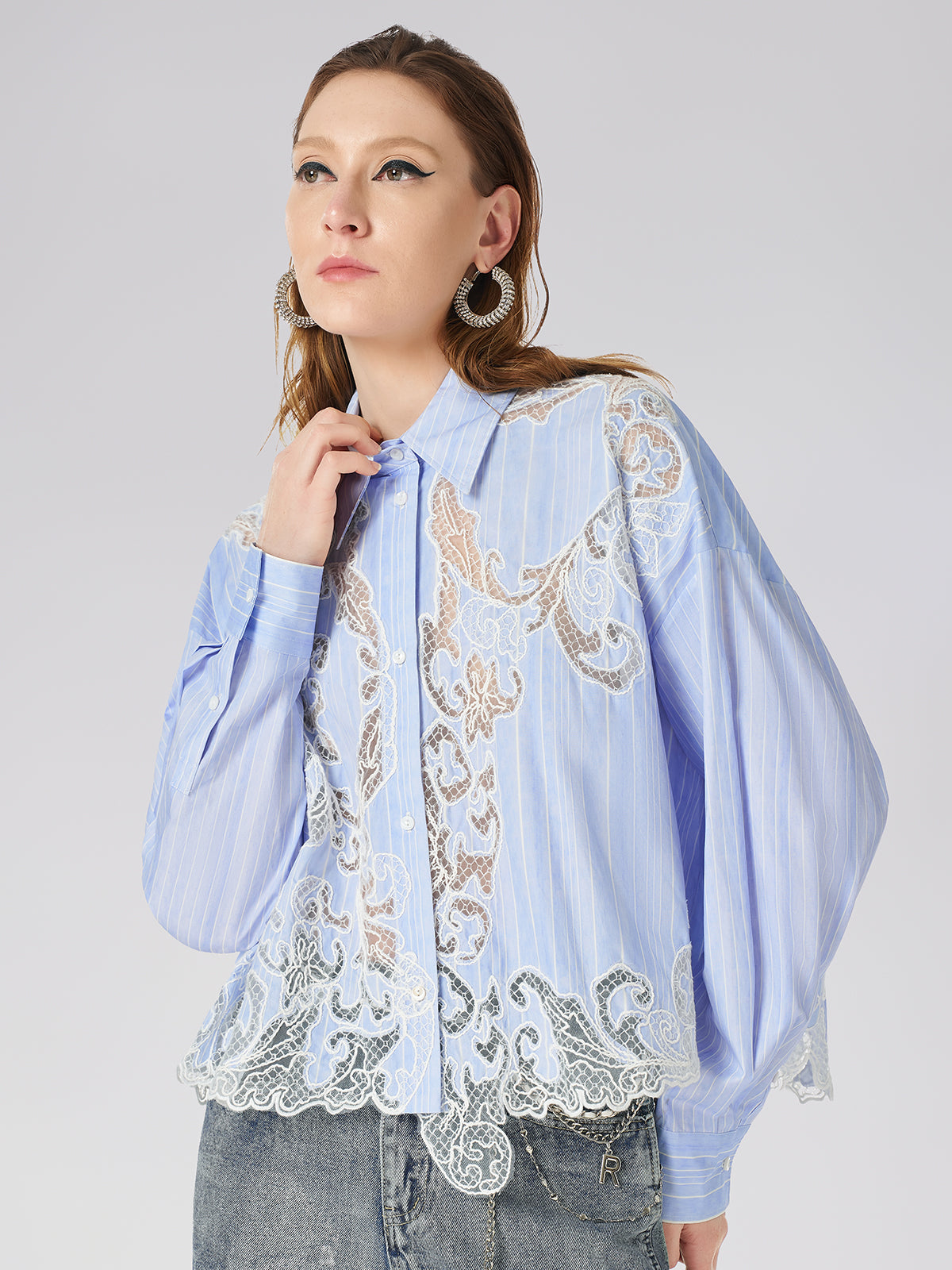 A chic and elegant lace positioning embroidered blouse. Designed with intricate details and beautiful lace patterns, it exudes sophistication. Crafted from comfortable and soft fabric with premium craftsmanship, this blouse ensures confidence and elegance for various occasions.