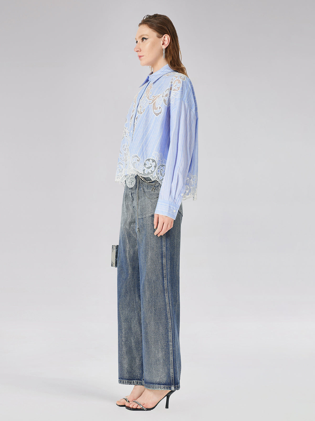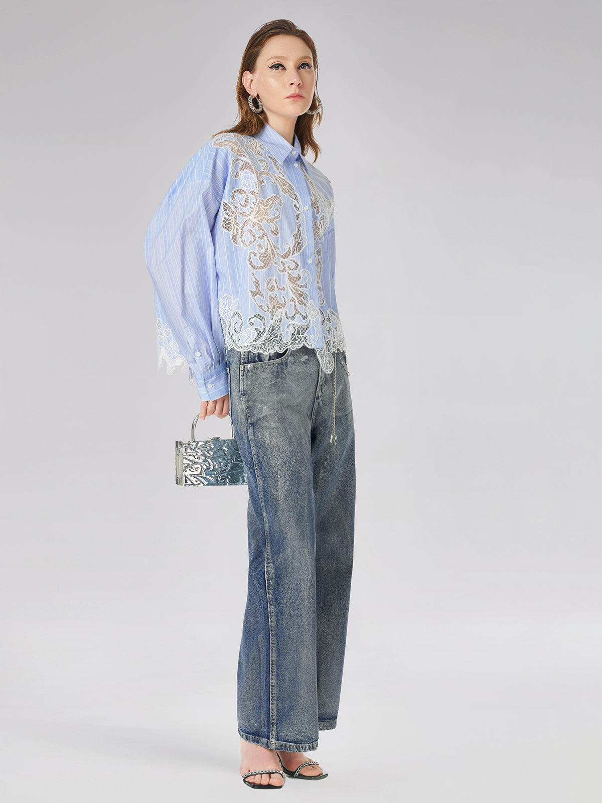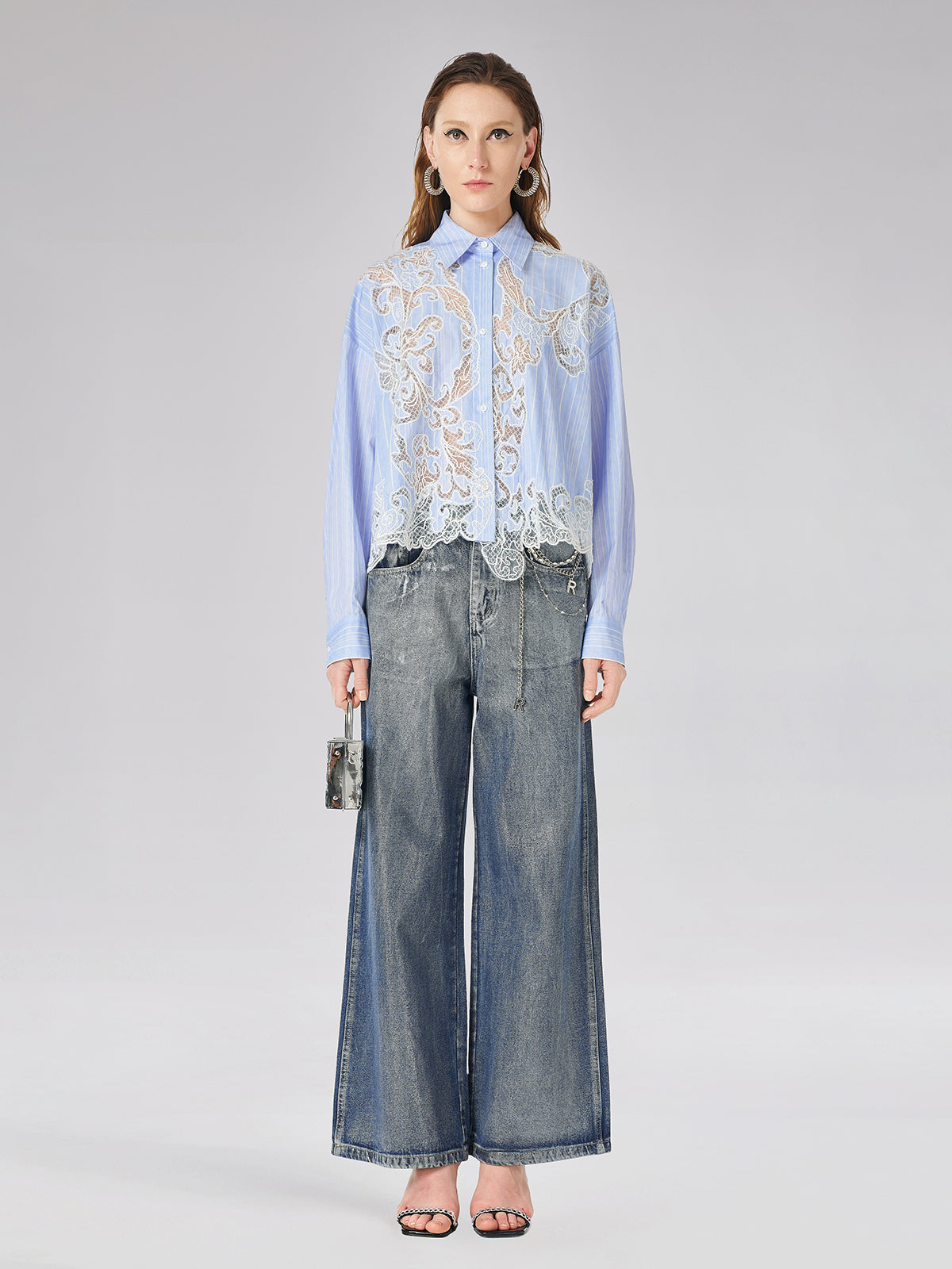 A chic and elegant lace positioning embroidered blouse. Designed with intricate details and beautiful lace patterns, it exudes sophistication. Crafted from comfortable and soft fabric with premium craftsmanship, this blouse ensures confidence and elegance for various occasions.