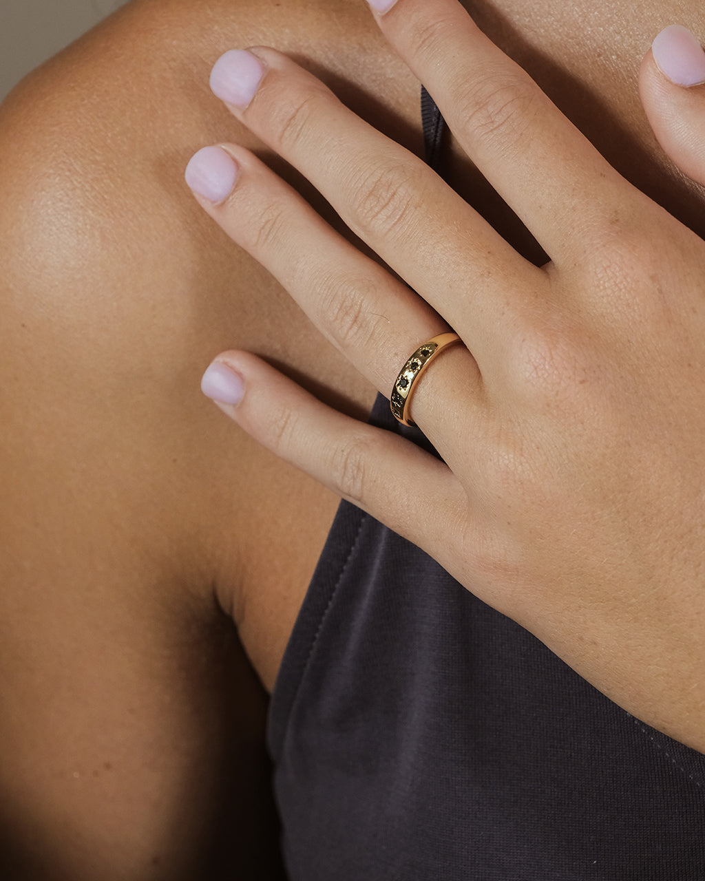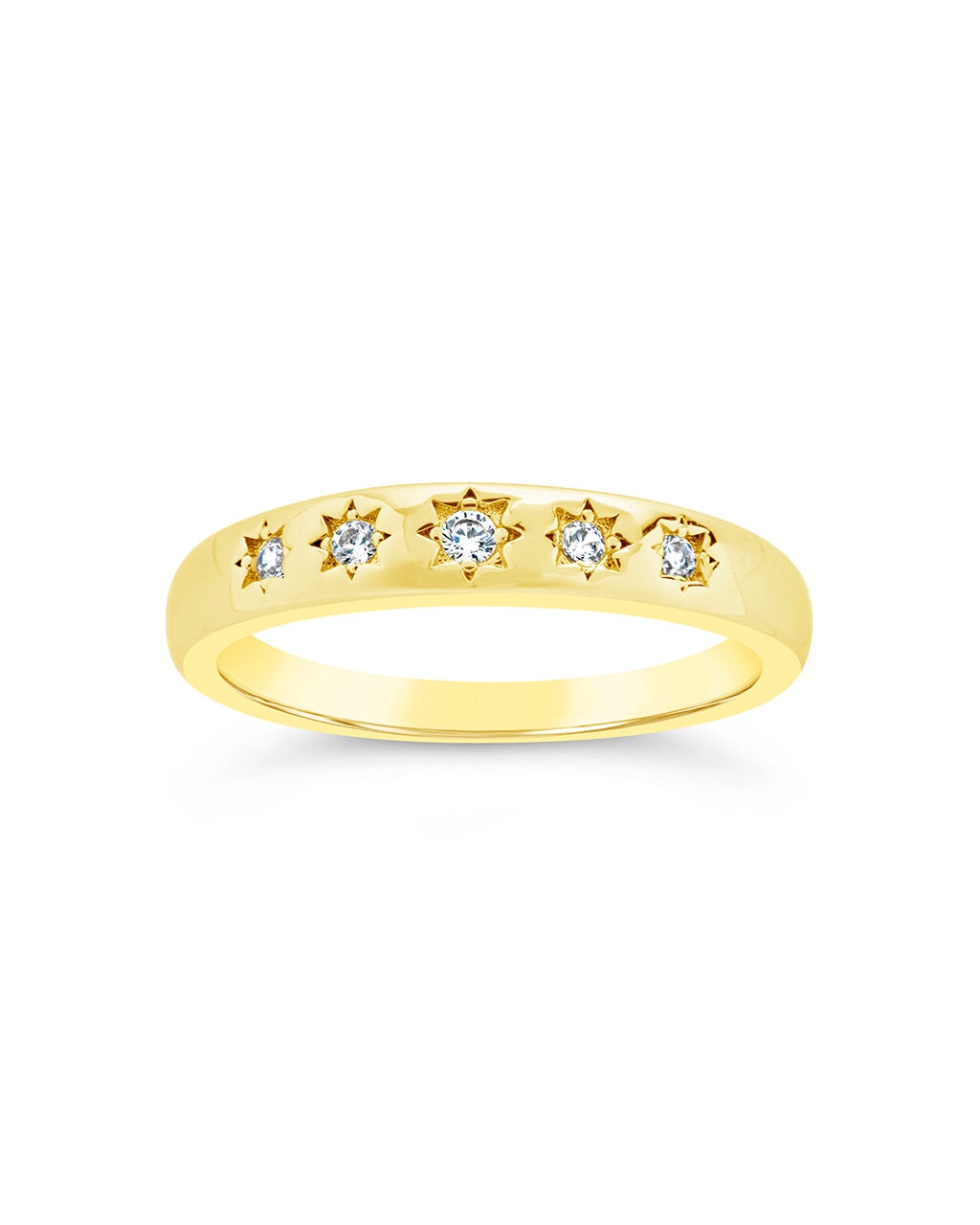 The Lennon Ring is out of this world! Featuring sparkling CZ stones in your choice of emerald or clear, plus an engraved burst band, you'll love how this ring adds a bit of pizzazz to any outfit! Shine on!