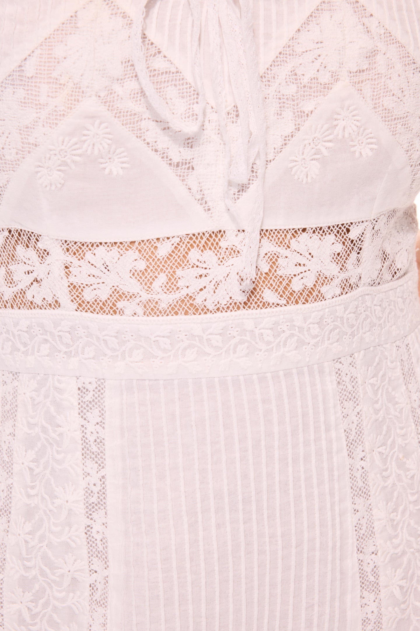 Designed for sunshine, the Maera Dress arrives with a stretchy, ultra-light cotton voile fabric with a zig zag wide vintage-inspired laces all over and delicate threaded ribbon trims. The pretty mini begins with adjustable spaghetti straps that fall to a slim bodice and waist above an airy, flirty skirt. The piece is finished with smocking at the back and a zipper is included.