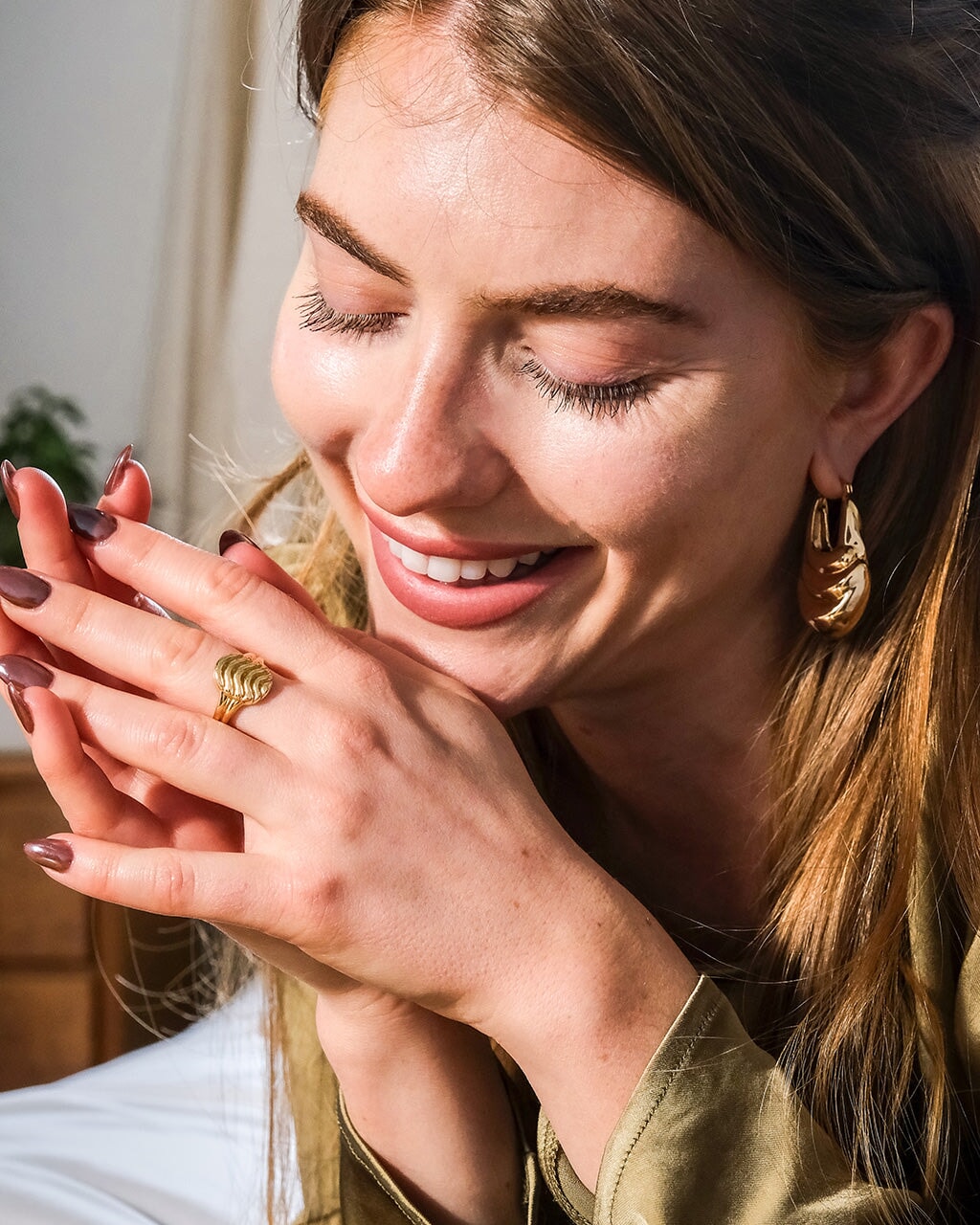 Introducing Manon Hoops, the epitome of elegance and sophistication. Crafted with unique textured hoop earrings, these statement pieces elevate any outfit. Channel your inner fashionista and make a statement with these luxurious hoops.