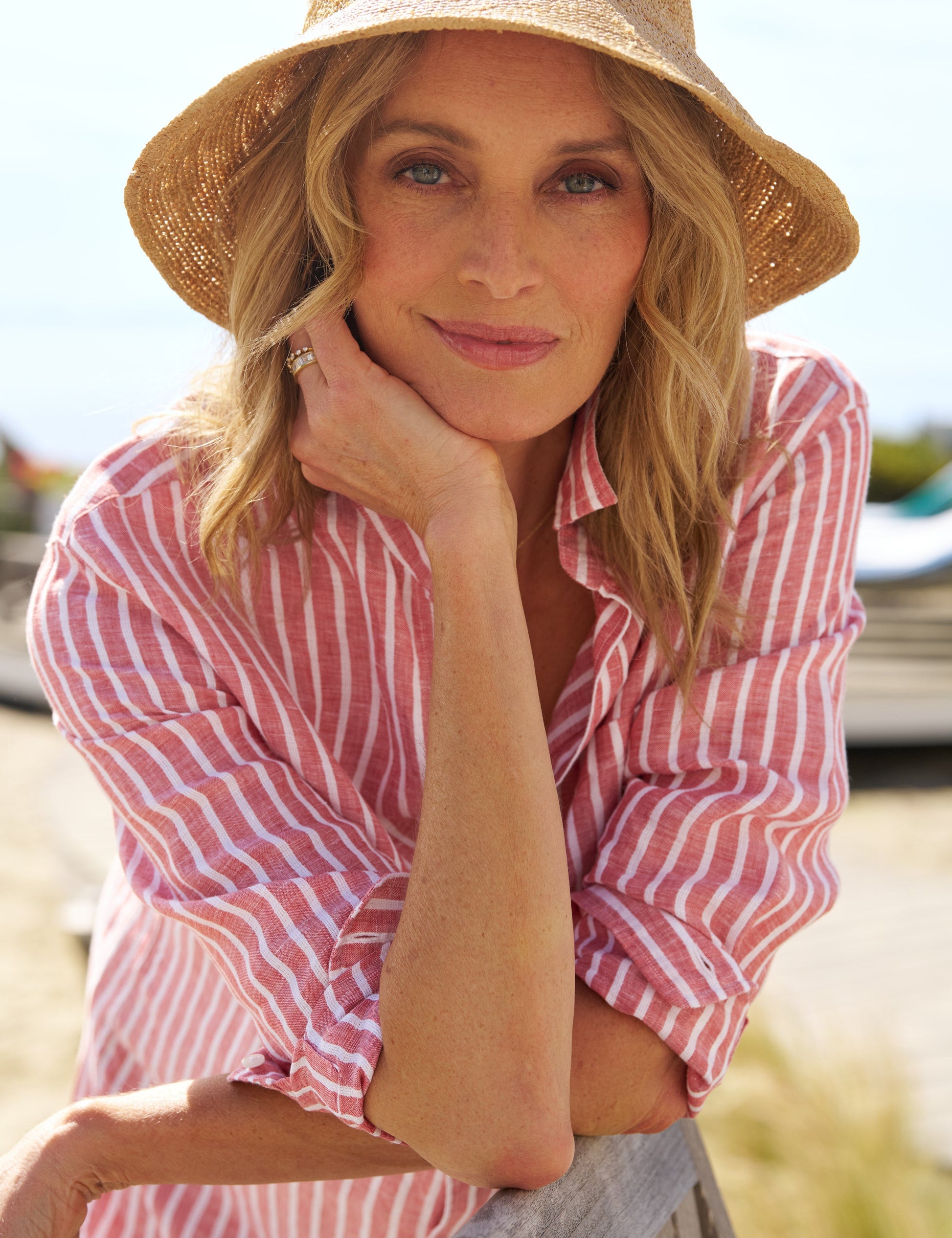 MARY Red and White Textured Stripe, Italian Classic Linen