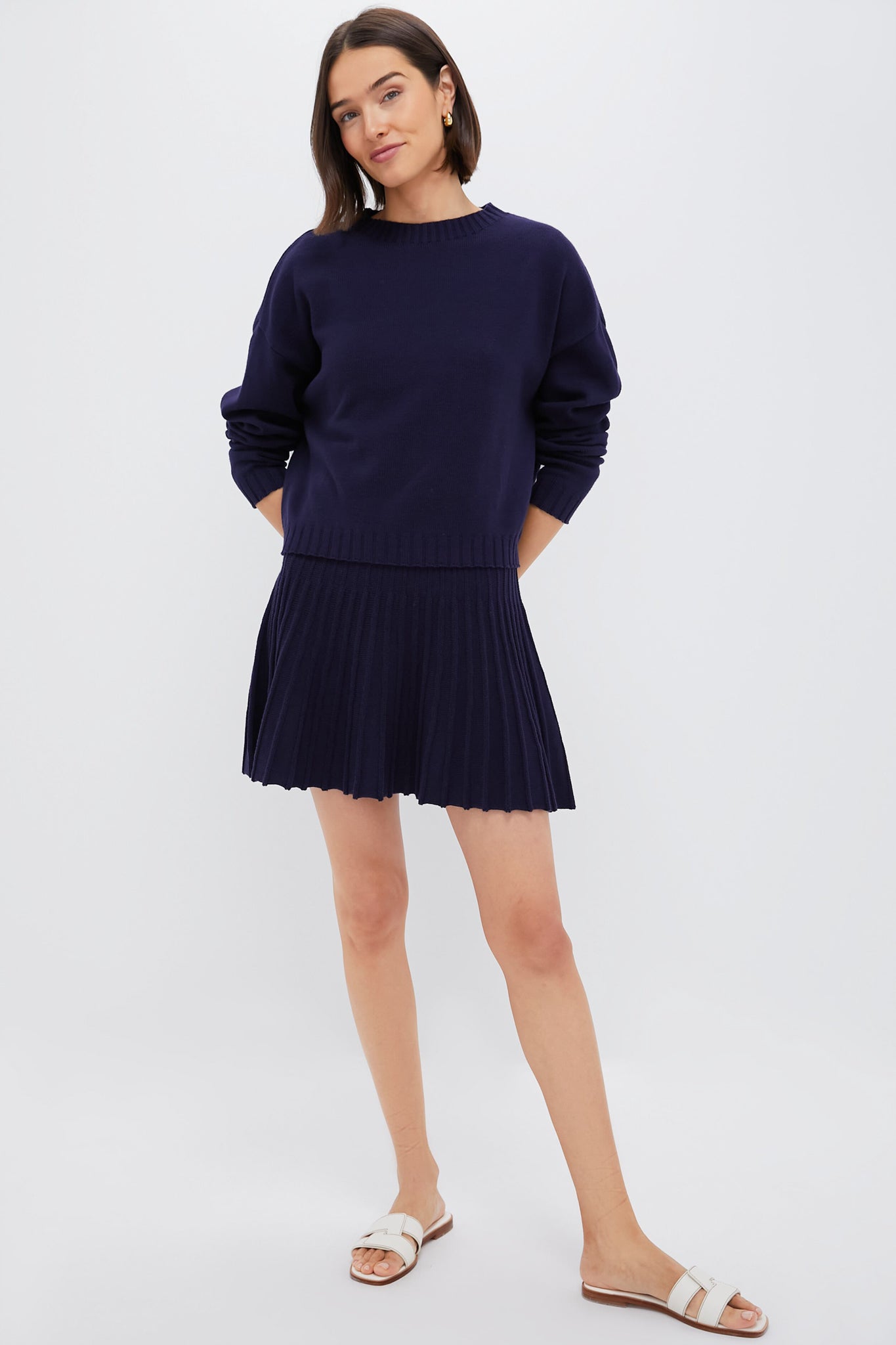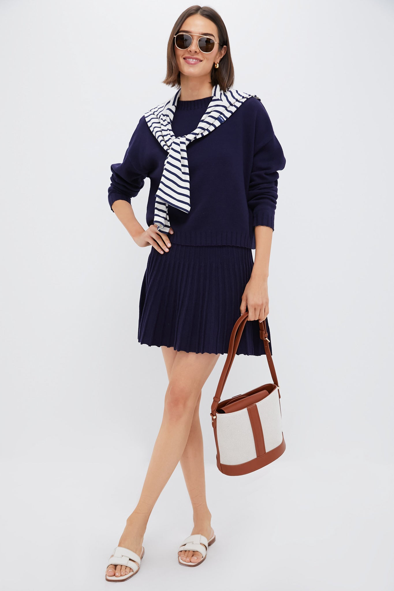 Stylish, chic, and oh so classic, meet our pleated skirt. Featuring an A-line silhouette, elastic waistband, and chic pleating throughout, pair this mini with the matching Navy Knit Milly Crewneck Sweater, sandals or flats, and a tote, or let this skirt speak for itself with a crisp white button down, loafers, and handbag.