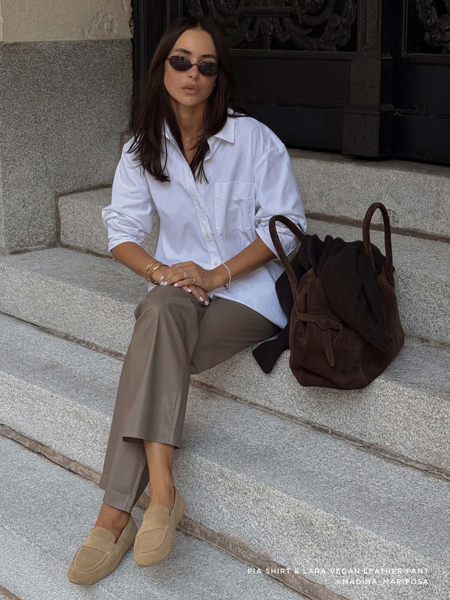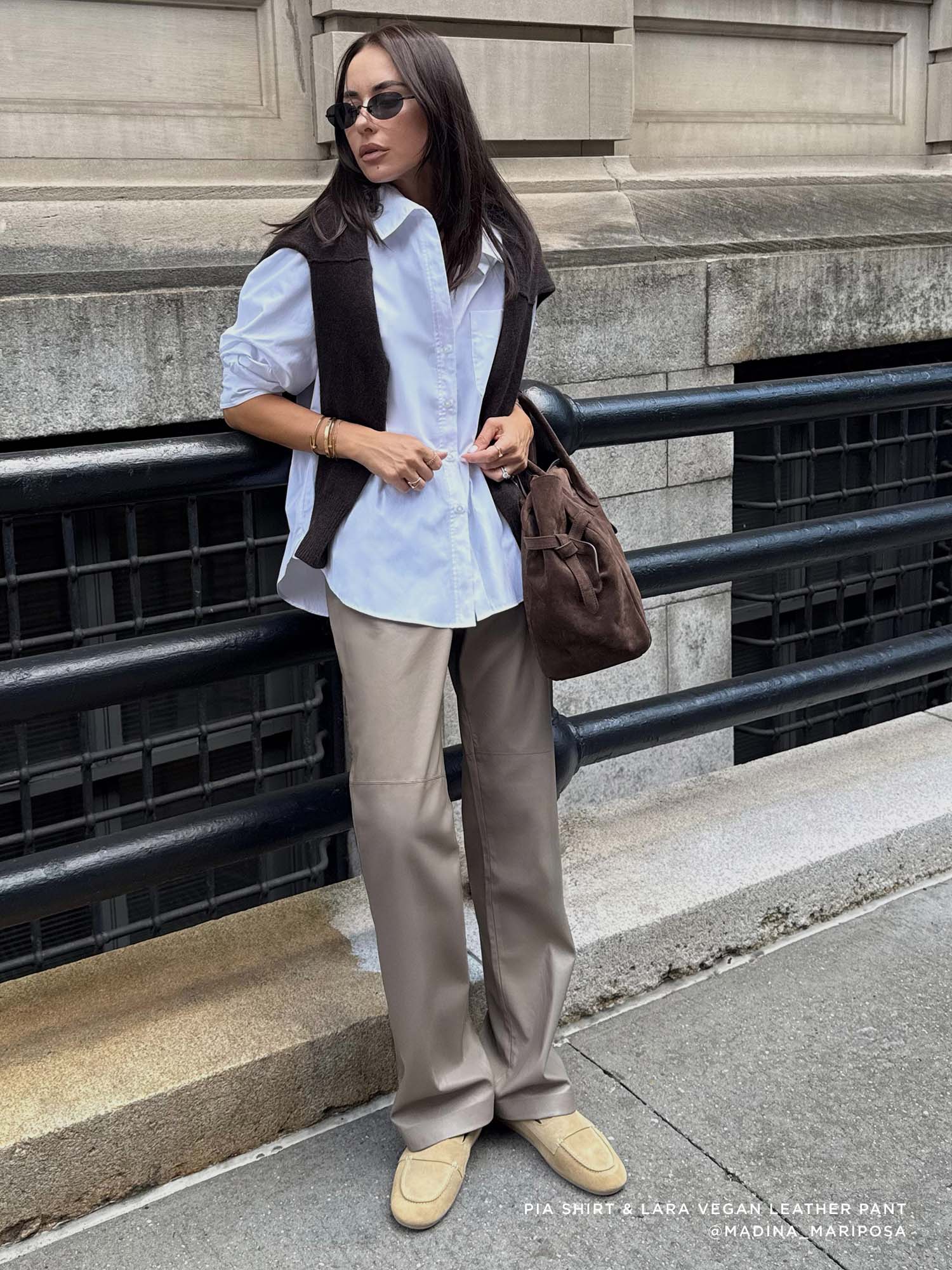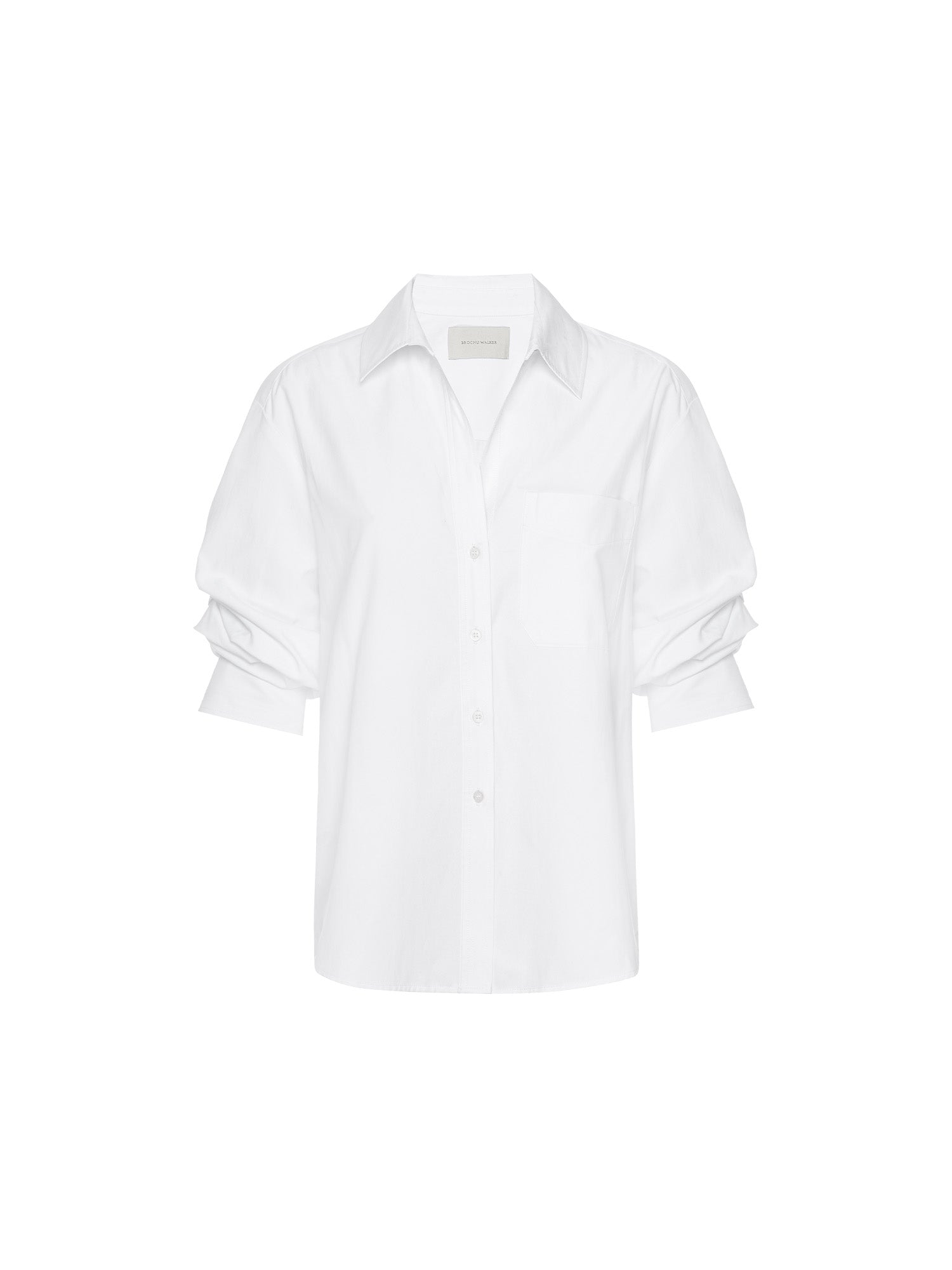 The newest addition to our essential Shirt Collection, our Pia Shirt has the same silhouette as our bestselling Everyday Shirt, now featuring a pre-styled scrunched sleeve giving it a more sensual sensibility than our most-loved cotton shirts. In a relaxed fit, that makes it effortless, this button front shirt features special details like subtle grosgrain trim on the placket and a locker loop on the back yoke.