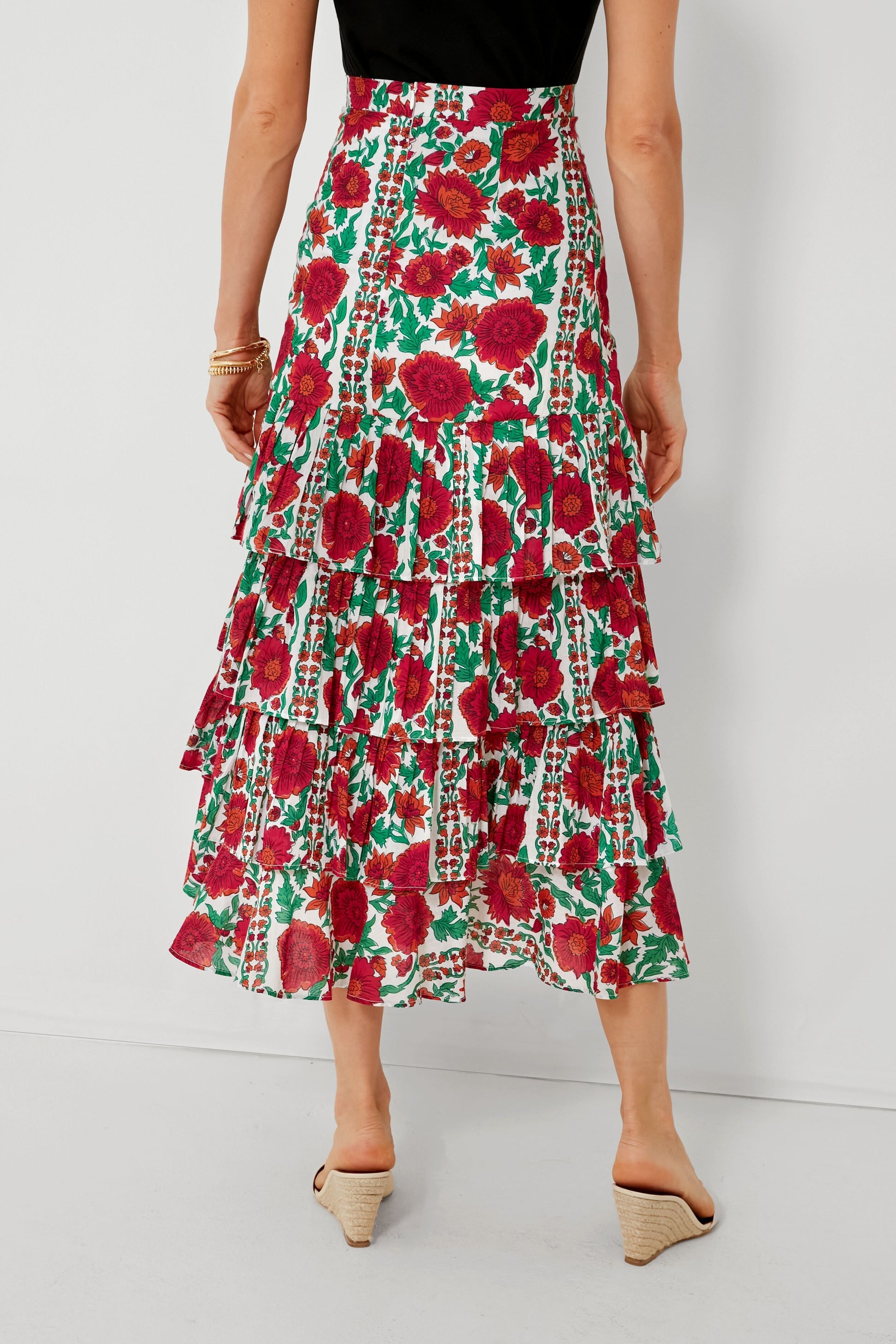 Just in– an easy yet dramatic summer skirt that goes anywhere, with anything, meet the Pink Dijon Honduras Maxi. Designed with a high rise silhouette and cascading pleated ruffles that are just begging to be twirled, this romantic style is ready to make an entrance. From afternoon happy hours to dinner out followed by dancing, we love the striking effect of this stunner.
