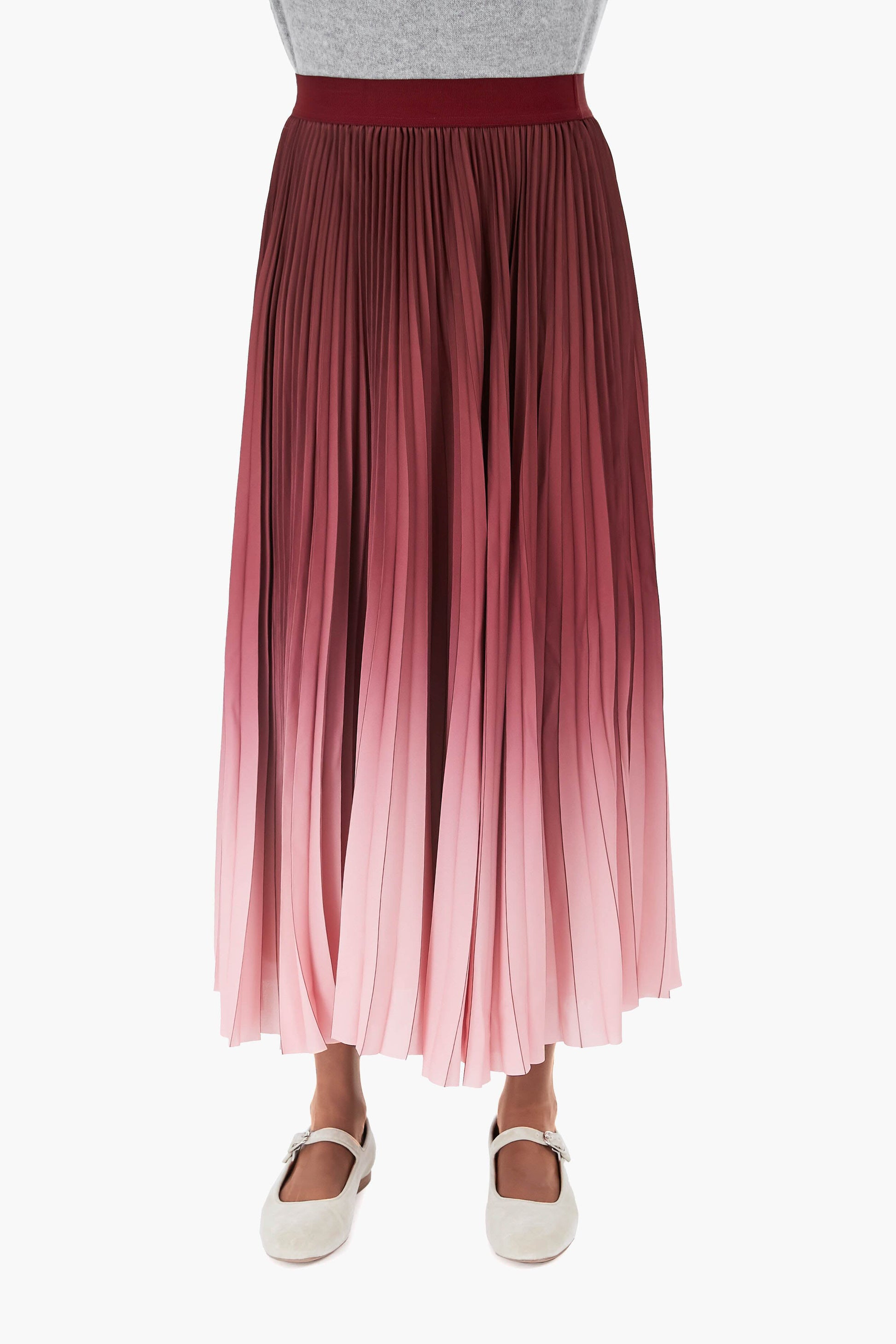The Plum Fulcro Skirt is a straight-fit pleated midi which features a beautiful gradient print. With an elasticated waistband for comfort and easy styling, as well as chic pleats throughout, this silhouette will become a quick favorite in your closet. Pair with a chunky knit and booties for a classic fall outfit that is totally twirl-worthy!