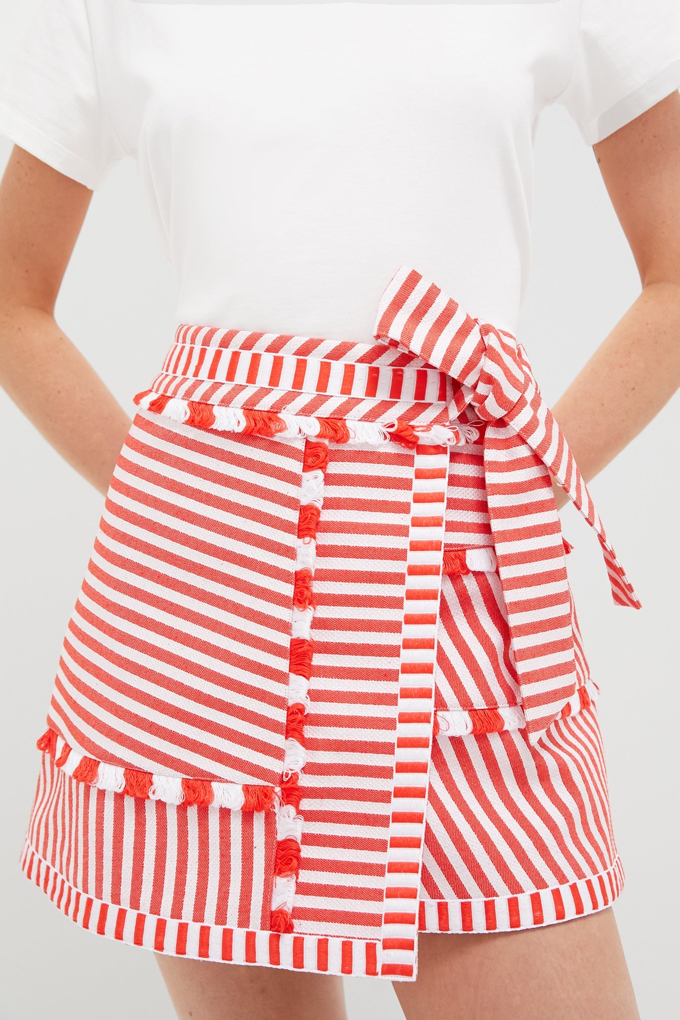 The Poppy Stripe Bay Skirt is a conversation starter! This fitted mini with a chic wrap design is crafted to perfection, featuring a yarn-dyed stripe and texture. Finished with all-over fringe trim, it delivers the perfect balance of playful charm and effortless sophistication. Pair with your favorite white tee, sandals, a toe for your essentials!