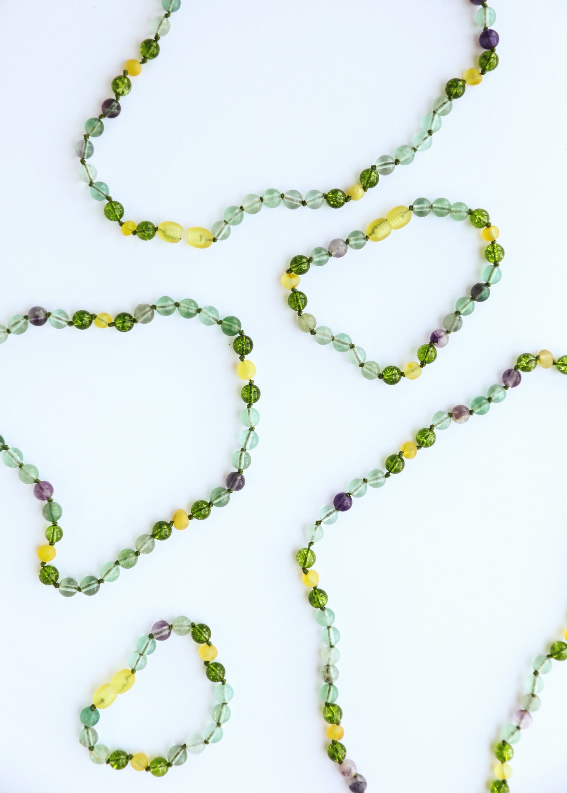 Raw Baltic Sea Amber + Fluorite + Peridot || Gemstone Anklet or Bracelet