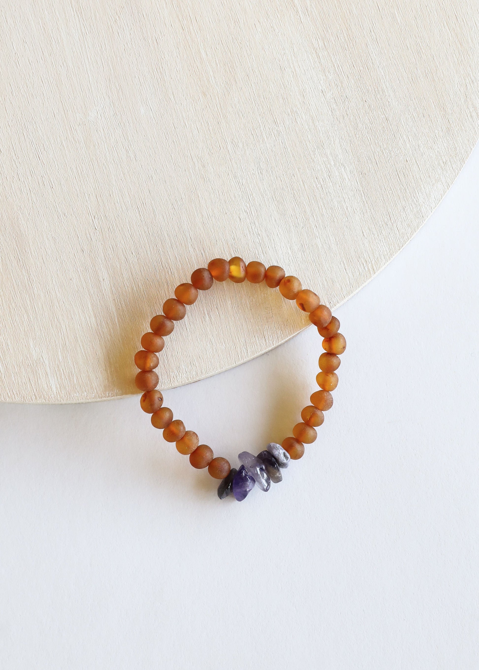 Raw Cognac Baltic Amber + Raw Amethyst || Bracelet Set