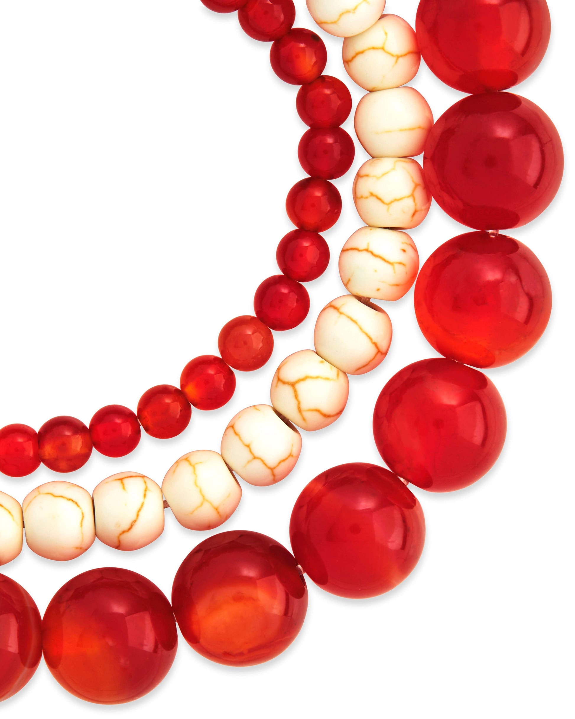 Red Agate & Cream Howlite Stretch Bracelet Set of 3