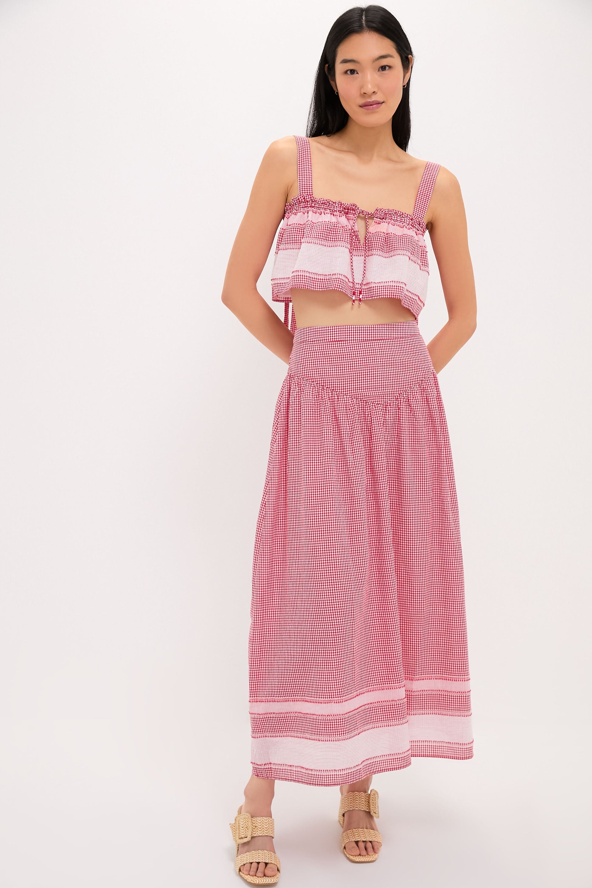 Ready for warmer days ahead? The Red and White Judy Skirt Set screams sunny and 75! Featuring a matching midi skirt with a drop waist and smocked crop top combo, just add a picnic basket for a the perfect springtime look. We styled it with woven heels, a clutch, and sunnies for all your daytime affairs.