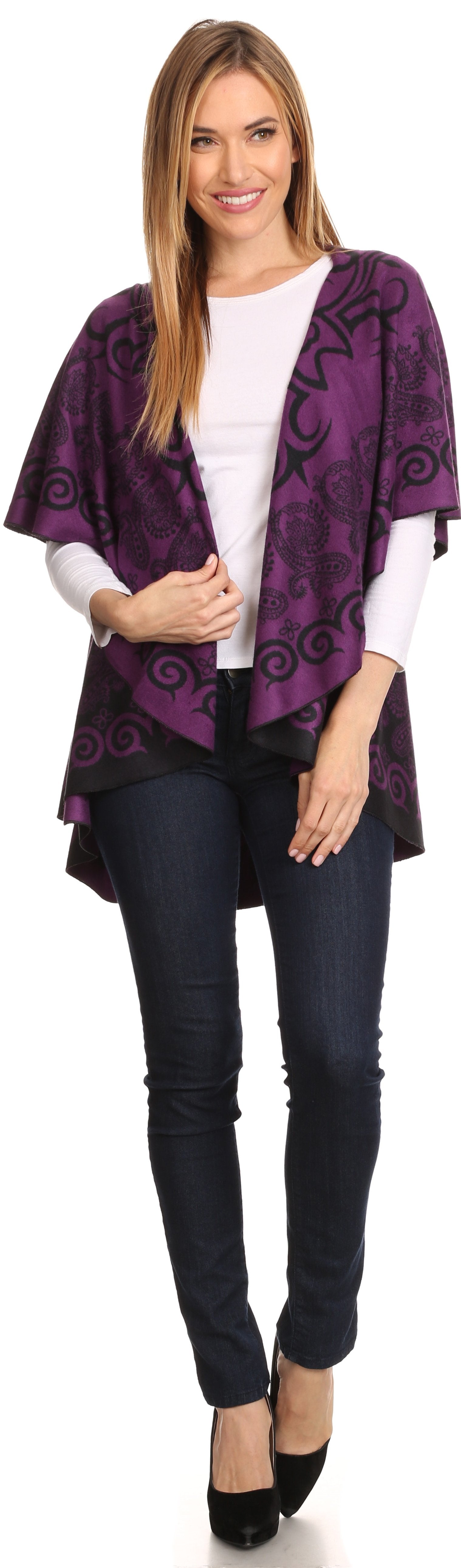 Sakkas Balie Reversable Printed Mid Weight Warm Poncho Throw Shawl / Cardigan