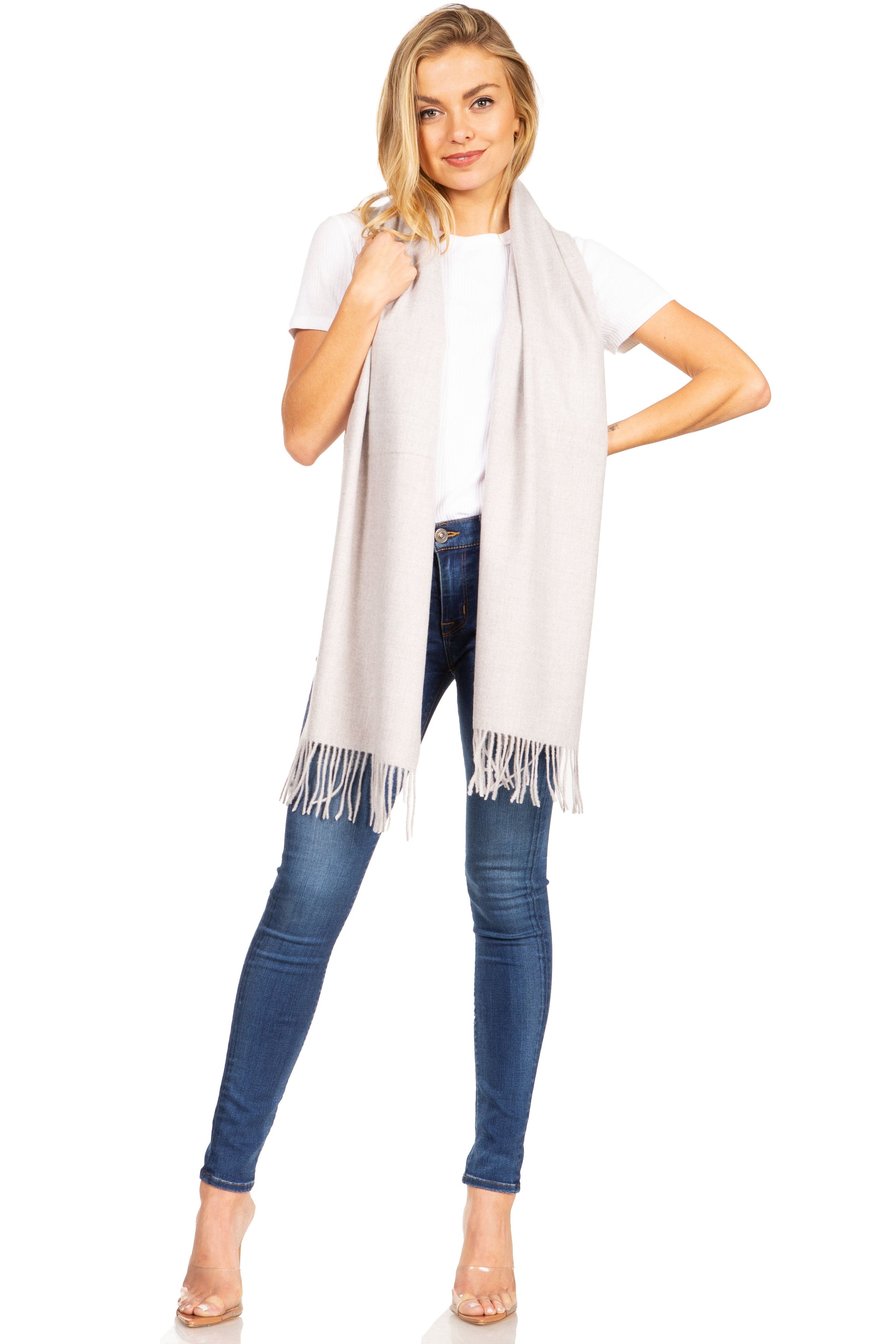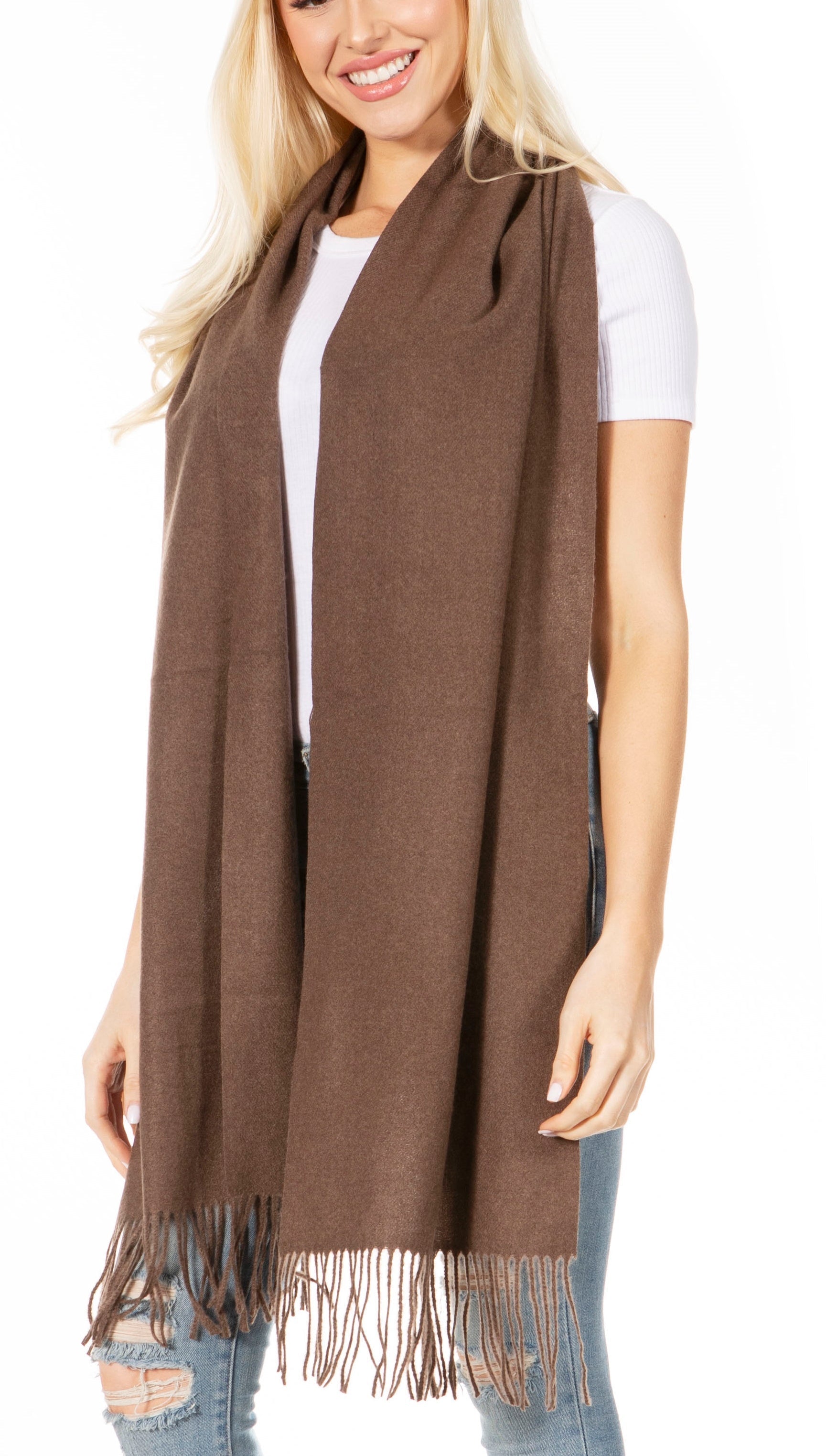 Sakkas Booker Cashmere Feel Solid Colored Unisex Winter Scarf With Fringe