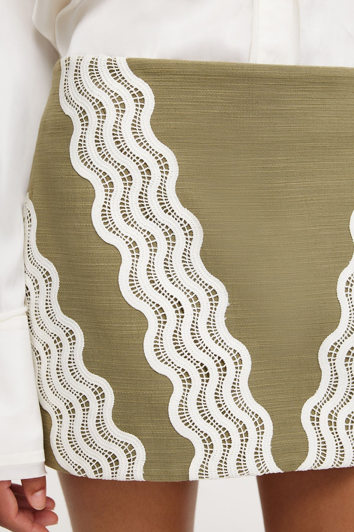This Significant Other Eleni Micro Skirt boasts a relaxed fit and sits low on the waist for comfortable wear. The panel lace trim on the front and back adds a touch of elegance and structure to this stylish skirt. Perfect for any occasion, this skirt is a must-have for fashion-forward individuals.