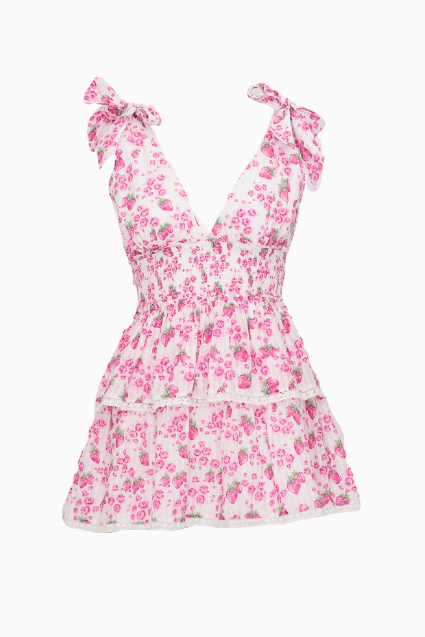 The Soira Dress returns as part of our Heirloom Print Capsule featuring our signature Rose Heart print with charming berries made-to-match with our Hair & Body Perfume Mists. This charming mini is designed with a delicate cotton voile fabric featuring ditsy metallic gold stars embroidered all over. Beginning with a deep v-neck with a self-tie detail the dress descends to a smocked waist. A sweetheart trim lines the neck while eyelet hearts adorn the two-tiered skirt.