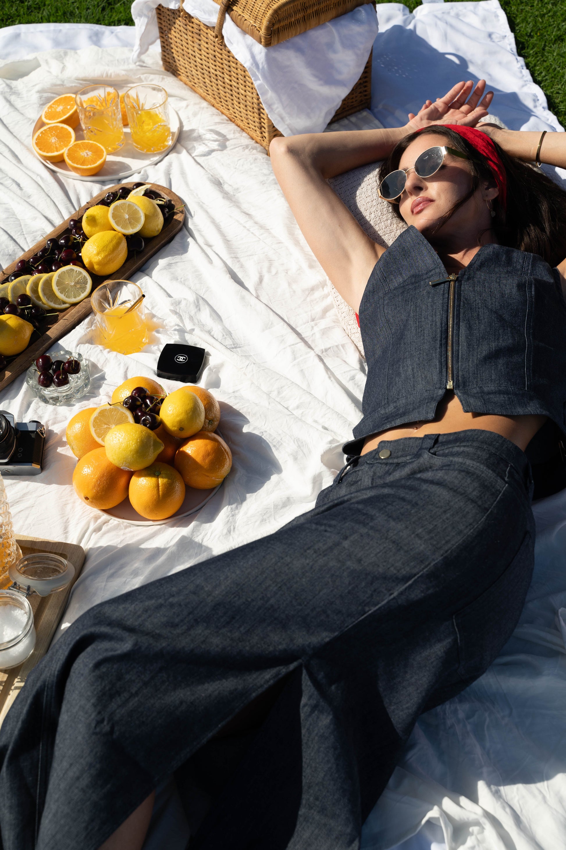 Elevate your fashion game with our Brandee long skirt crafted in premium shirt weight Italian stretch denim. Perfect for both casual and formal occasions, this skirt embodies effortless elegance. Pair with our Brandee Vest or Tina U-scoop tank and layer with our indigo lightweight denim Alexandra Trench.