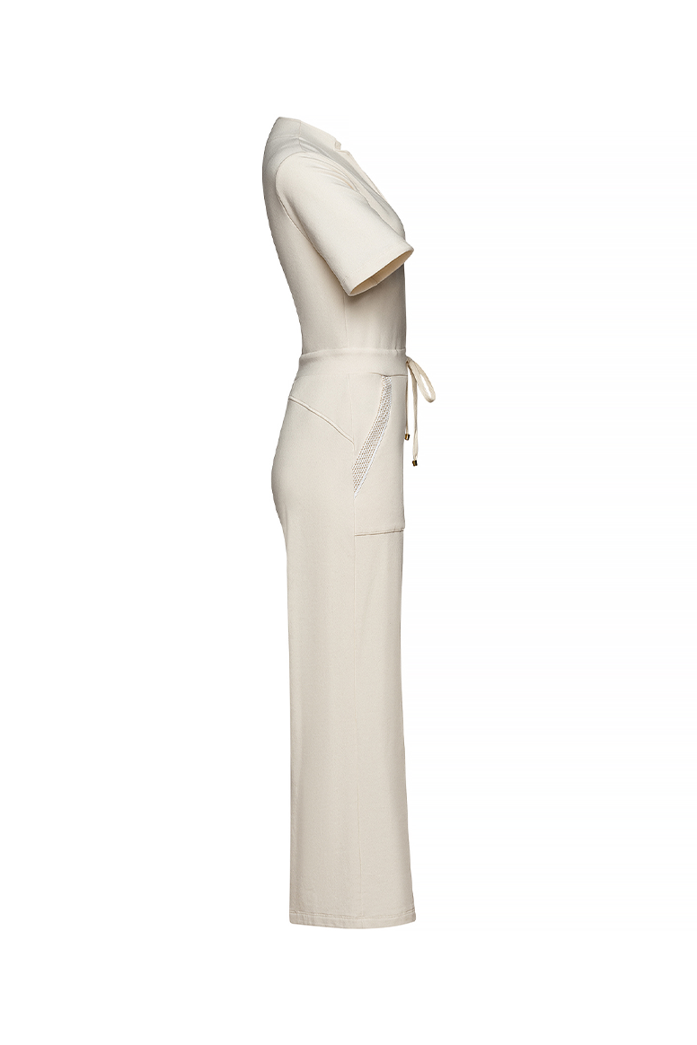 Experience effortless elegance and all-day comfort with The Carolina Jumpsuit. Crafted from the softest fabric with a hint of stretch, this versatile piece showcases our signature LPC neckline for a flattering fit. The wide-leg silhouette, featuring a 29" inseam, is paired with a drawstring waist for a customizable fit, while artisanal handmade cotton trim on the patch pockets adds a touch of craftsmanship and uniqueness. The gold zipper adds a luxe detail, making this jumpsuit as stylish as it is practical.
