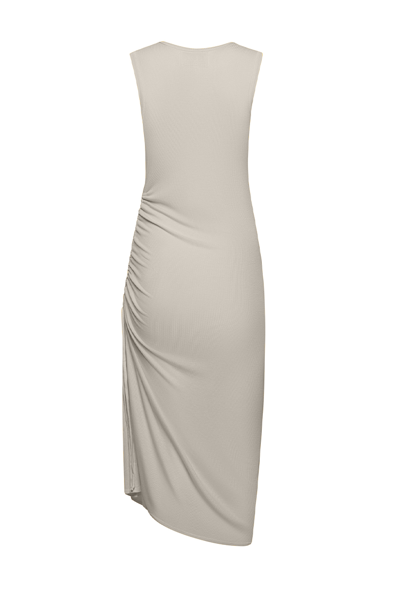 This rib knit dress is an essential in any women's wardrobe. With an adjustable side slit, chic u-scoop neckline and ultimate comfort it is easy to recognize its versatility. From day to night, lounging around the house, errands or thrown over a swimsuit, this dress will be your new favorite staple piece.