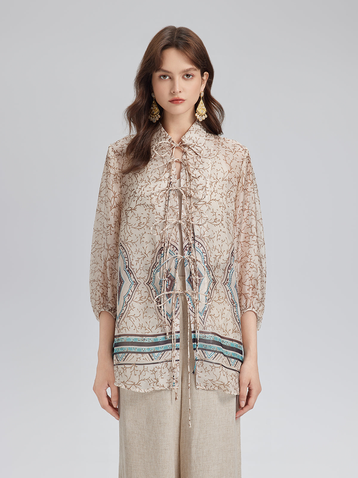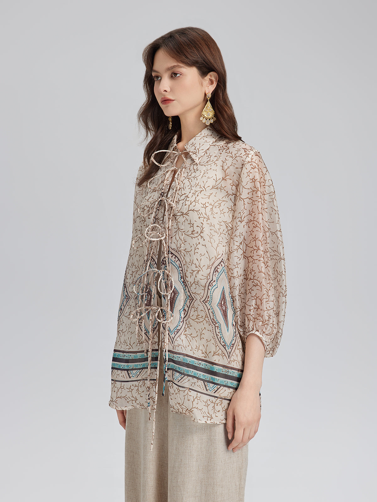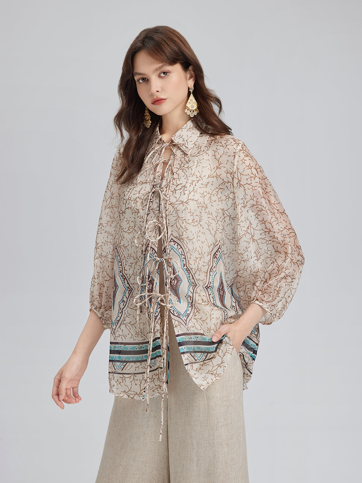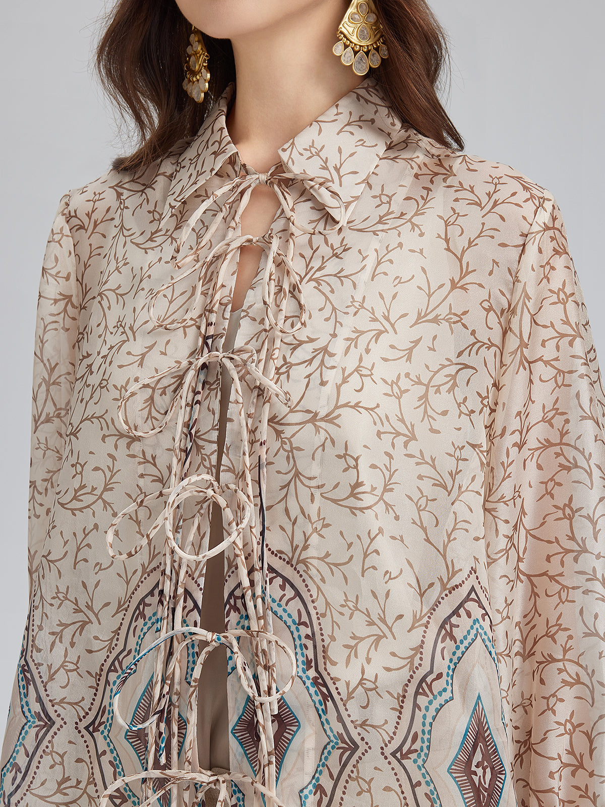 Soft-hued viscose feels breathable and gentle on the skin, while the tie-front adds a touch of detail and adjustability. Relaxed sleeves ensure all-day comfort, and the easy palette pairs effortlessly with your wardrobe. (Inner wear not included.)