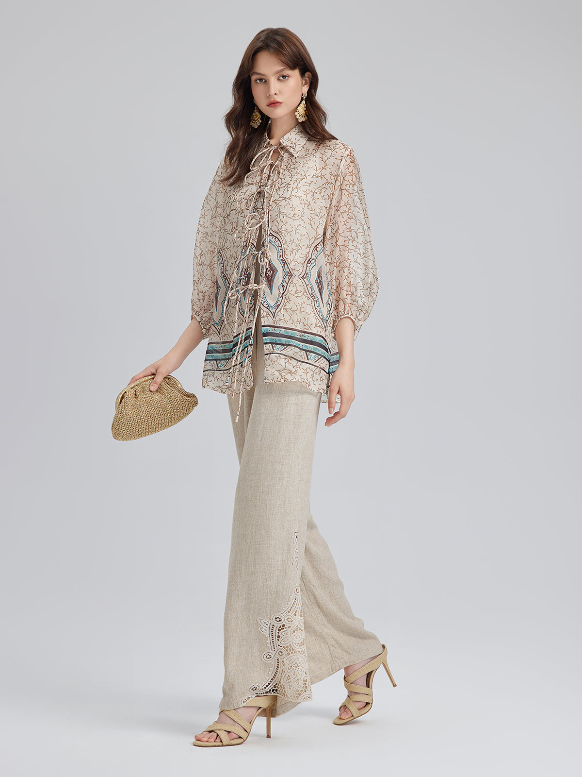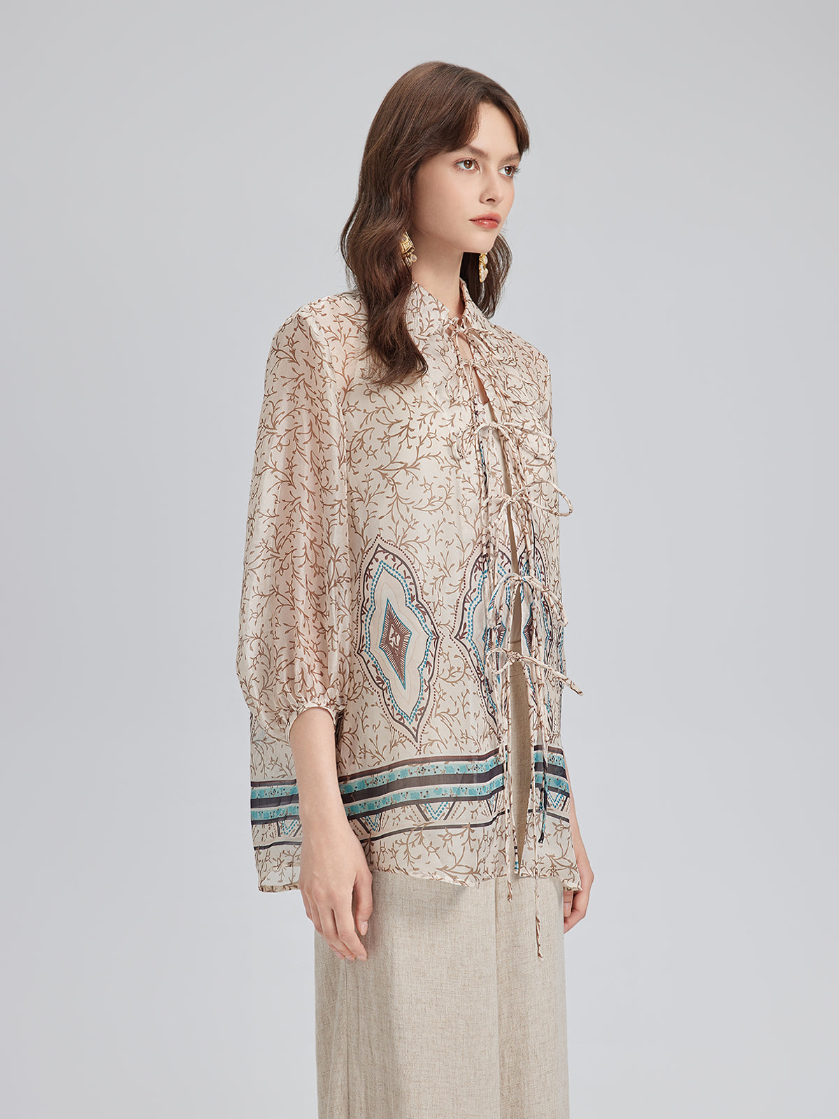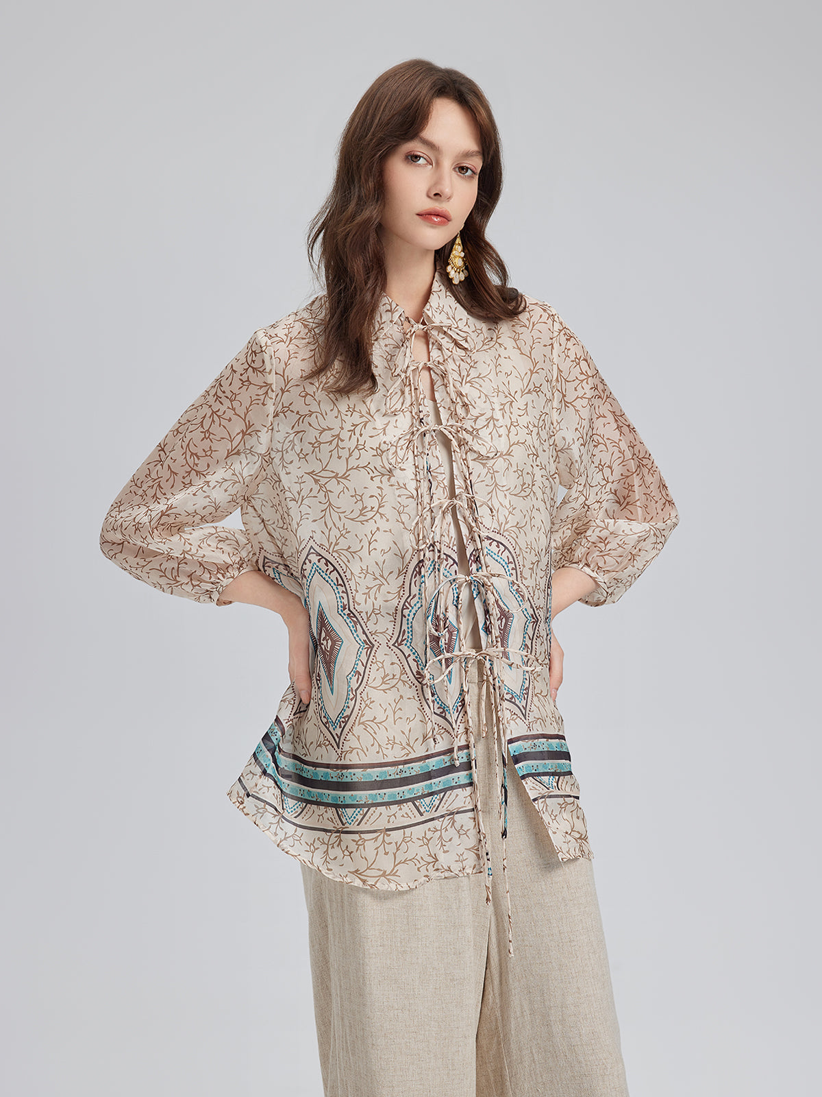 Soft-hued viscose feels breathable and gentle on the skin, while the tie-front adds a touch of detail and adjustability. Relaxed sleeves ensure all-day comfort, and the easy palette pairs effortlessly with your wardrobe. (Inner wear not included.)